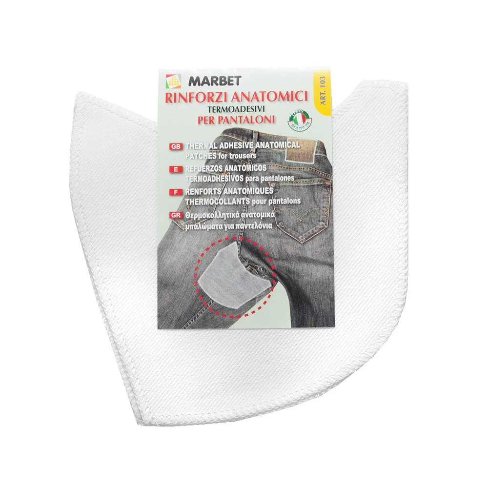 Рекомендованы для ремонта джинсовых брюк в области внутренней части бедра (между ног). Термозаплатка – незаменимый помощник в ремонте и укреплении зоны «между ног» ваших любимых джинсов. Благодаря удобной анатомической форме и термооснове, заплатка легко и быстро устанавливается и аккуратно повторяет линии ремонтируемого места.