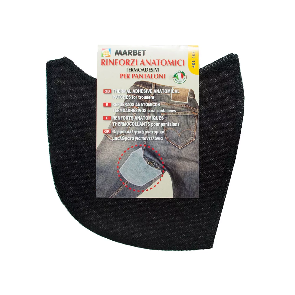 Рекомендованы для ремонта джинсовых брюк в области внутренней части бедра (между ног). Термозаплатка – незаменимый помощник в ремонте и укреплении зоны «между ног» ваших любимых джинсов. Благодаря удобной анатомической форме и термооснове, заплатка легко и быстро устанавливается и аккуратно повторяет линии ремонтируемого места.