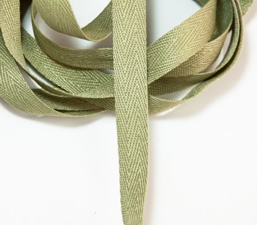 Тесьма отличается высокой плотностью за счет переплетения и использования более толстых нитей. Области применения: окантовка краёв швов верхней одежды, укрепление плечевых швов, нашивается сверху для декорирования, является актуальным элементом сдержанного декора.