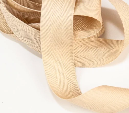 Тесьма отличается высокой плотностью за счет переплетения и использования более толстых нитей. Области применения: окантовка краёв швов верхней одежды, укрепление плечевых швов, нашивается сверху для декорирования, является актуальным элементом сдержанного декора.