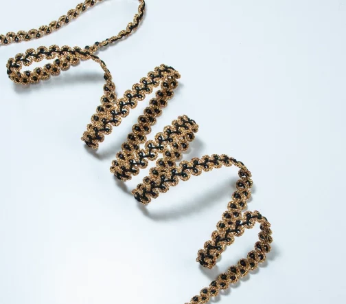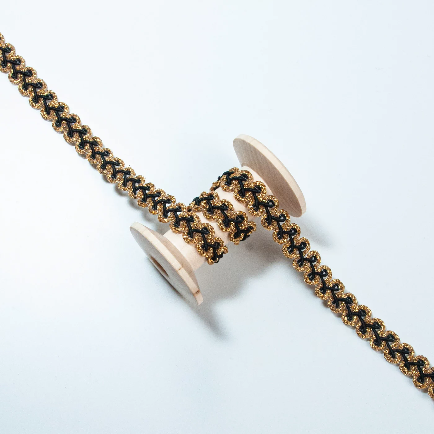 Высококачественная износостойкая тесьма классических узоров плетения, применяется непосредственно для отделки костюмов и пальто из твида и рогожки для создания стиля шанель, а также в прикладном варианте для декорирования сумок, шляпок и иных галантерейных проектов. Также создает стильный штрих при декорировании абажуров, подушек и других текстильных интерьерных задумок; применяется для отделки сценической одежды и костюмов "под старину".