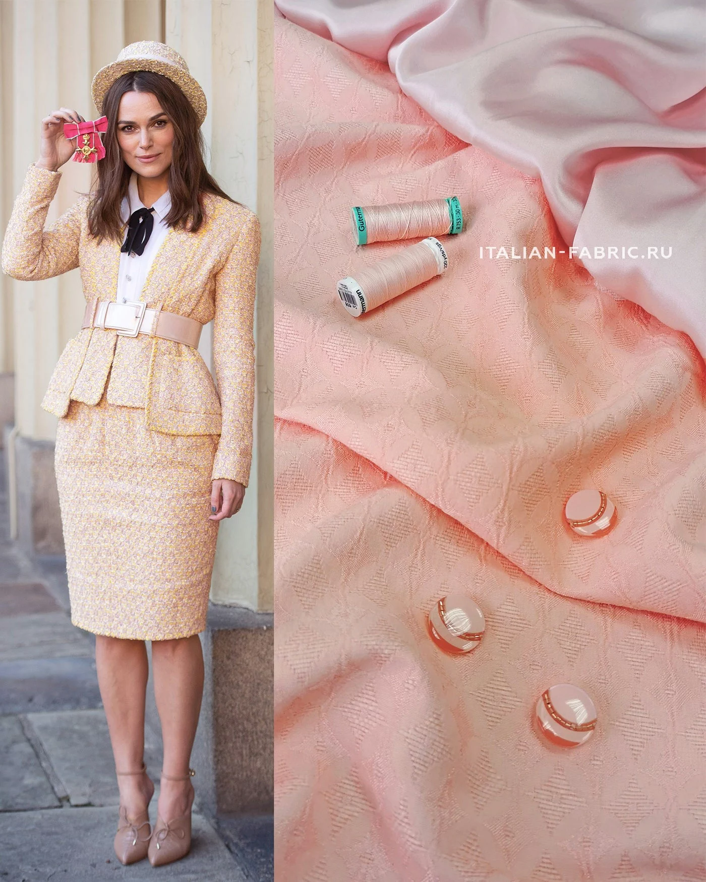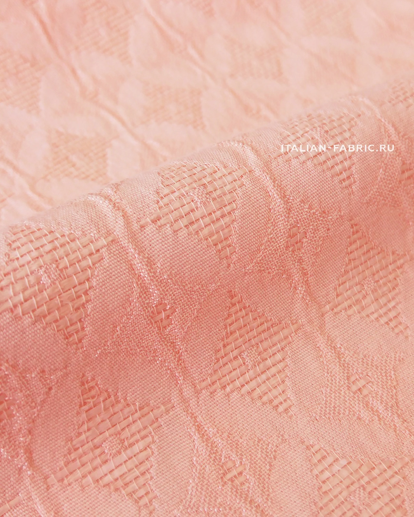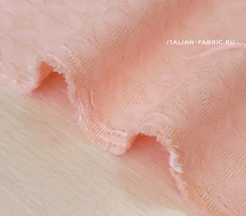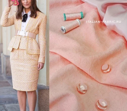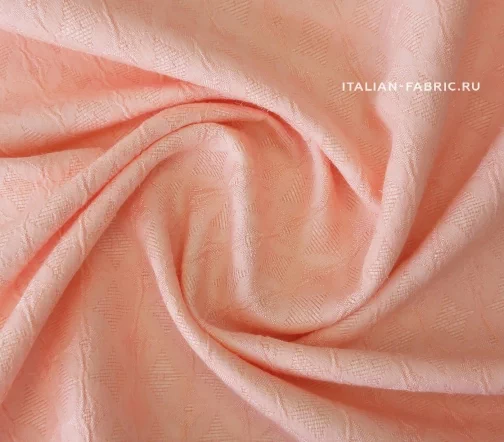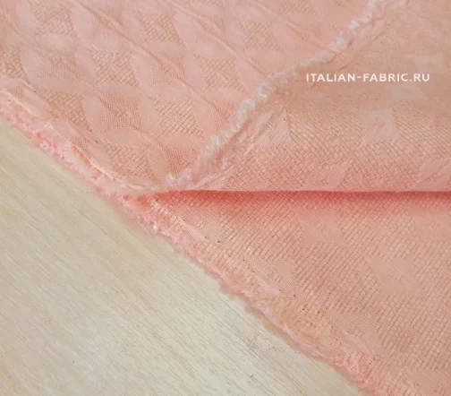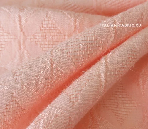 Нежный и очень приятный тактильно haute couture жаккард прекрасного светло-розового с ноткой абрикосового цвета. Стильный геометрический жаккардовый узор с элегантным мягким блеском. Для пошива праздничных костюмных ансамблей, платьев, юбок, брюк и жакетов. Материал пластичный, держит форму.