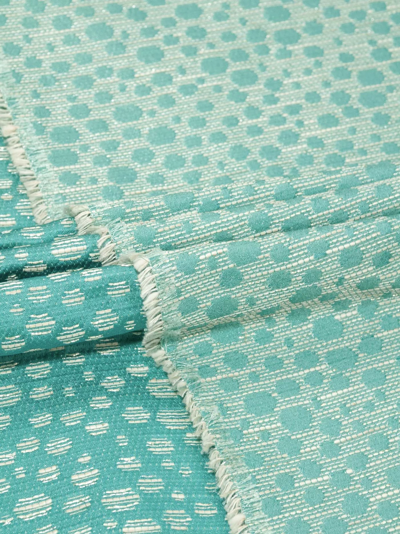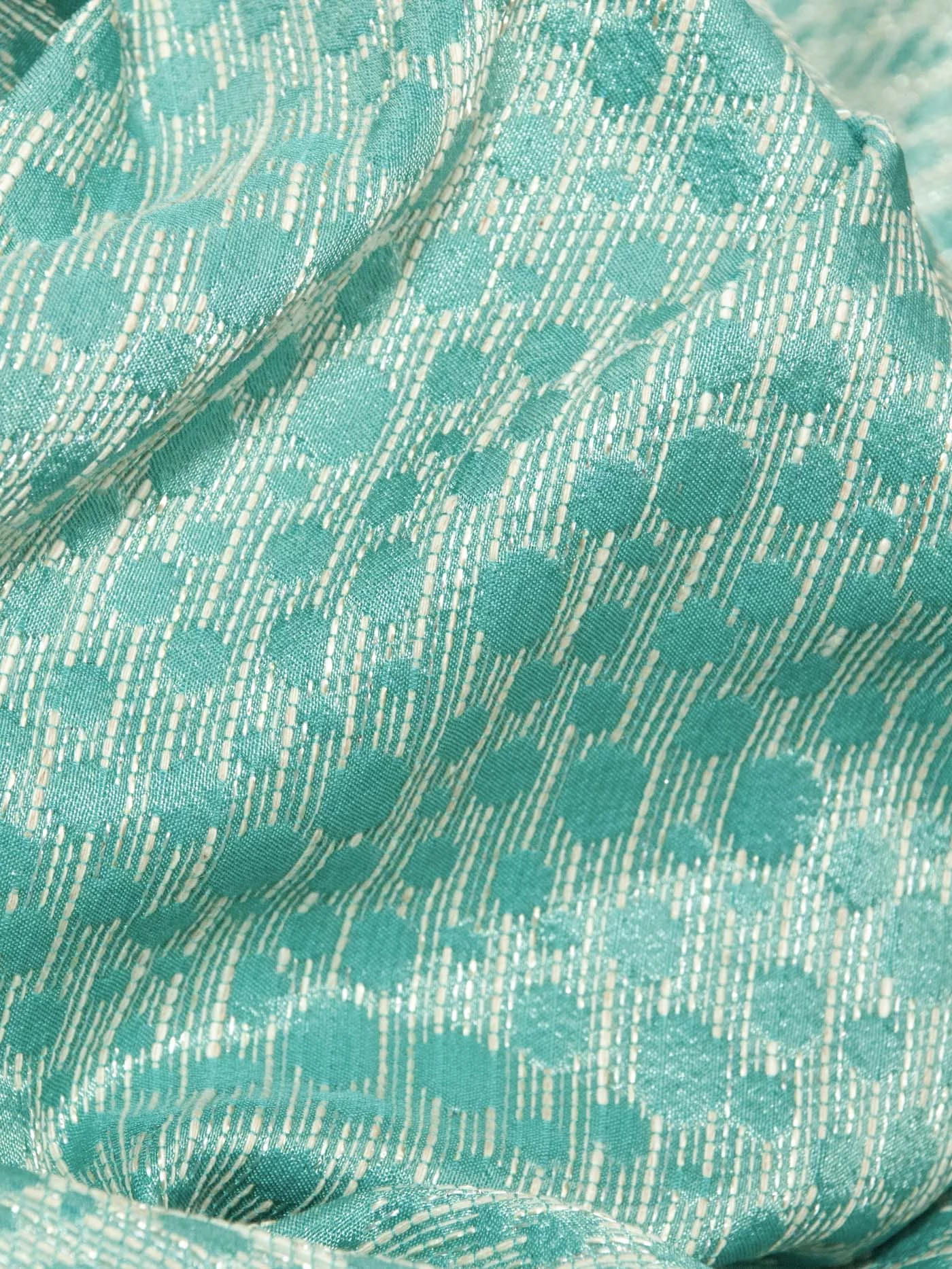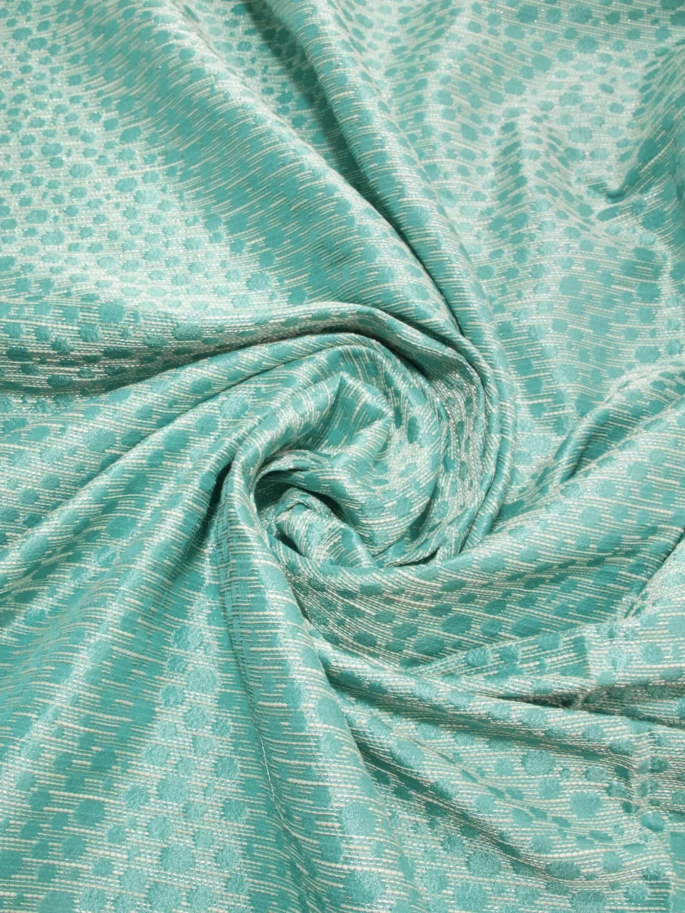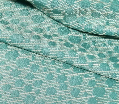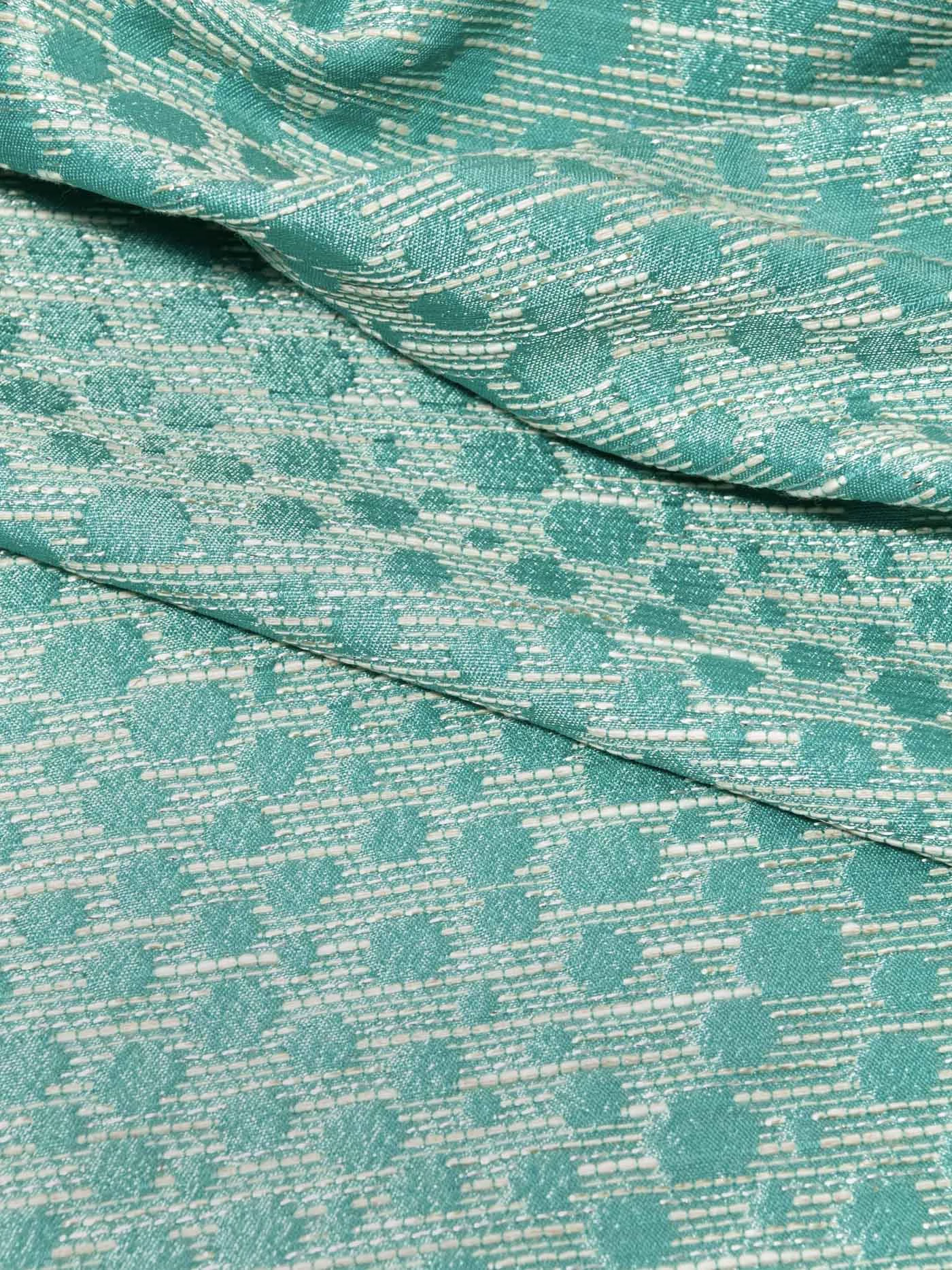 Платья, жакеты, любые костюмные ансамбли будут из этого жаккарда яркими, стильными и в то же время сдержанны. Держит форму. Цвет бирюзовый в зелень.