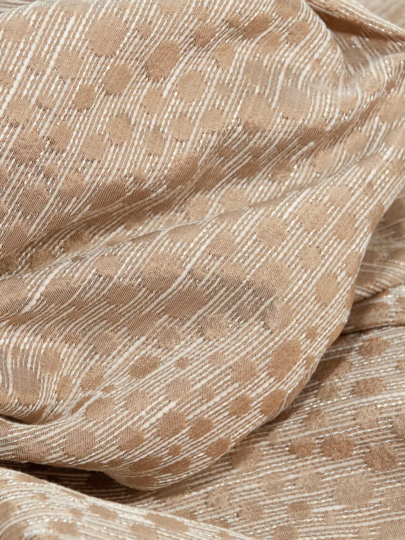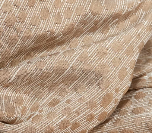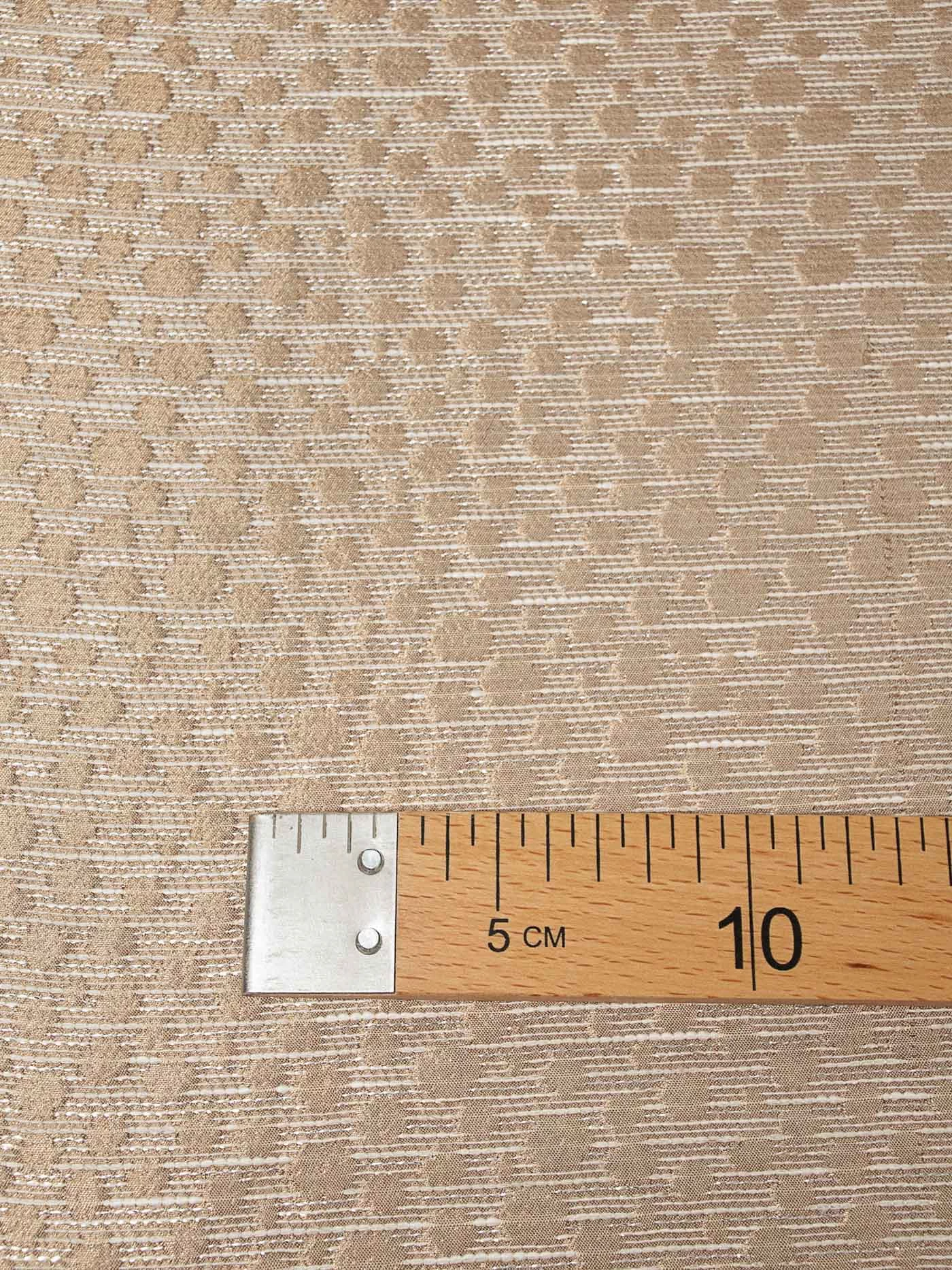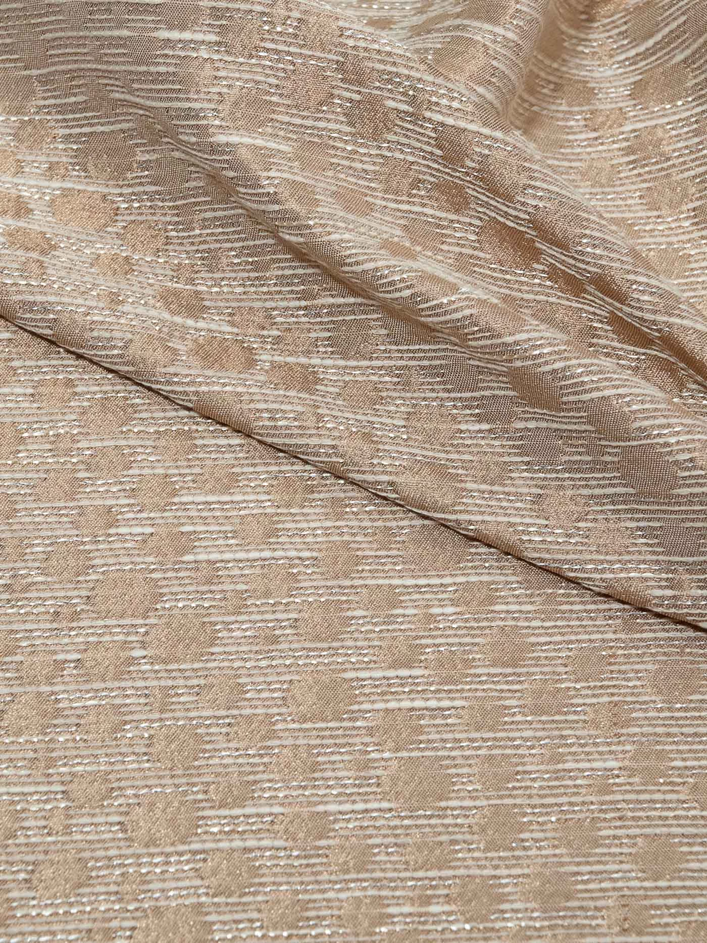 Платья, жакеты, любые костюмные ансамбли будут из этого жаккарда яркими, стильными и в то же время сдержанны. Держит форму. Цвет золотисто-бежевый.