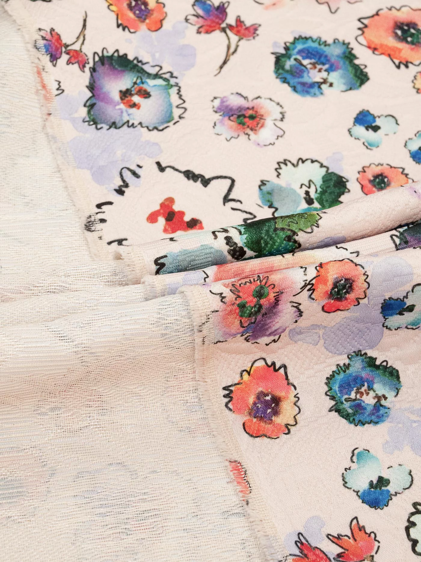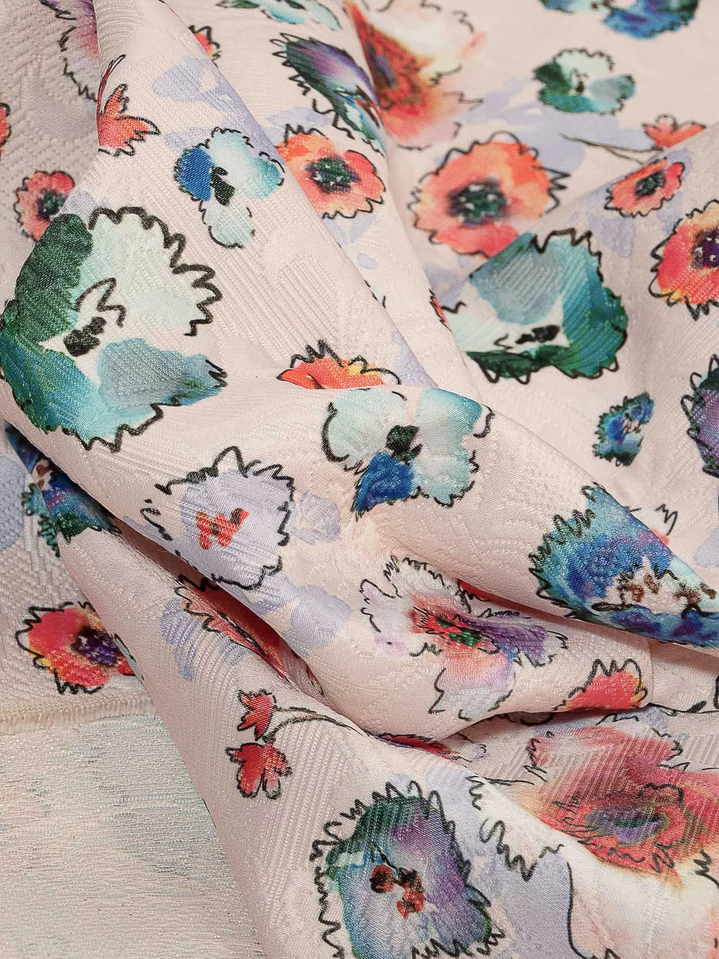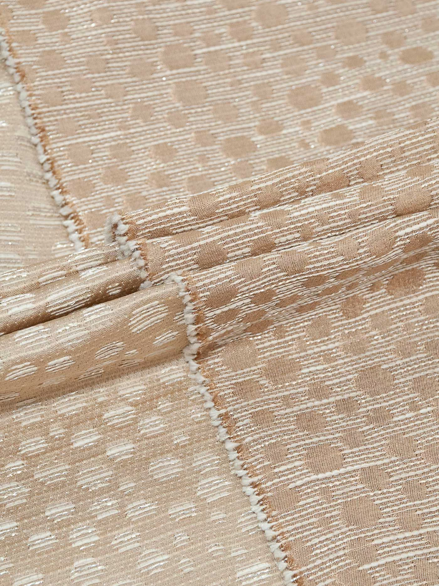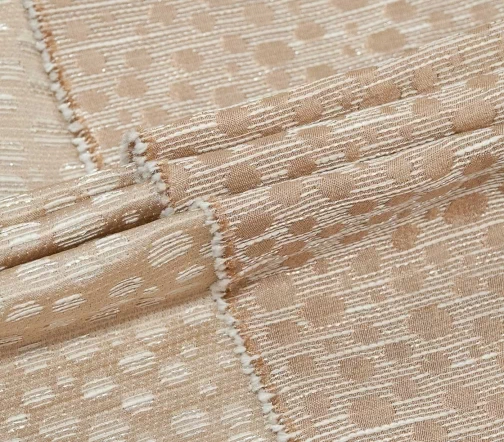Платья, жакеты, любые костюмные ансамбли будут из этого жаккарда яркими, стильными и в то же время сдержанны. Держит форму. Цвет золотисто-бежевый.