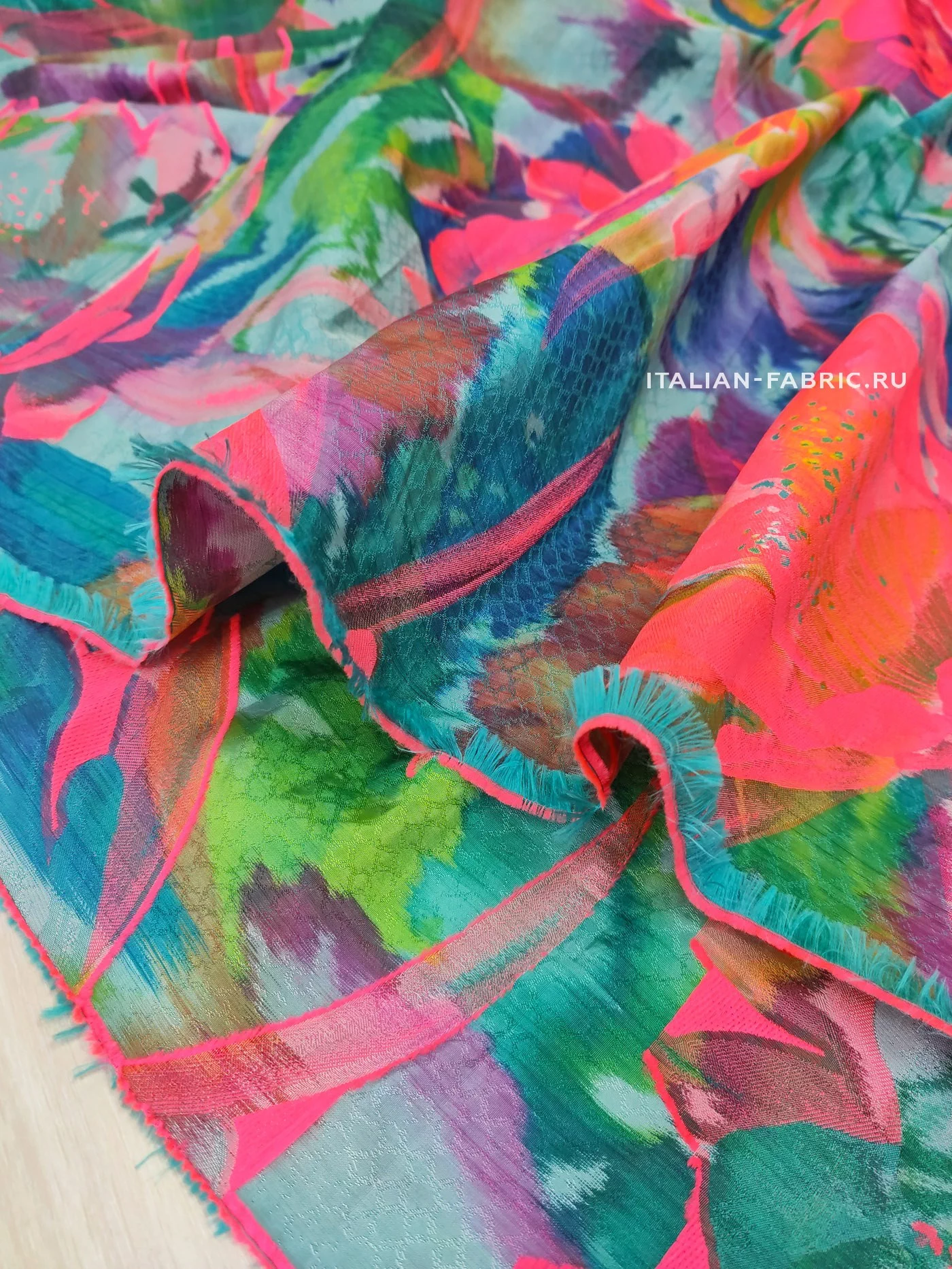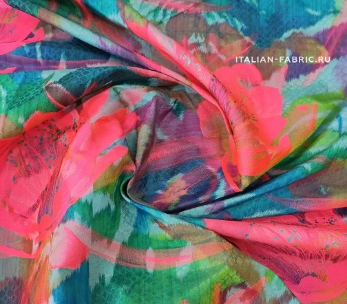 Яркие и сочные краски. Средней плотности жаккард прекрасно подходит для пошива не только костюмов, но и легких плащей. Размер цветка (принта): выс. - 14см, шир. 20-23см.