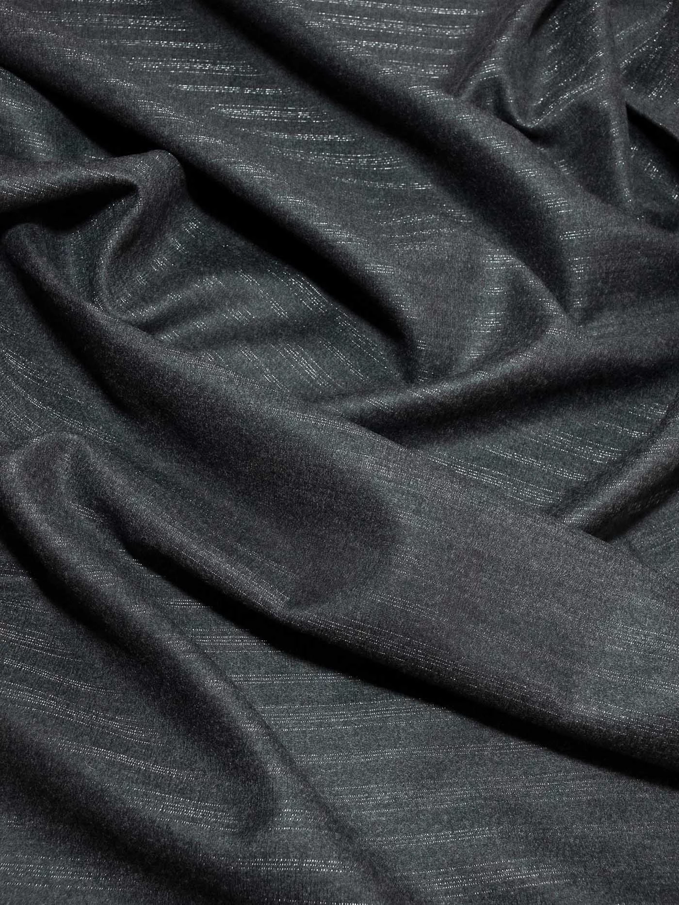 Средней плотности, шелковистая, не колючая, изумительного качества костюмка c поперечными нитями люрекса.