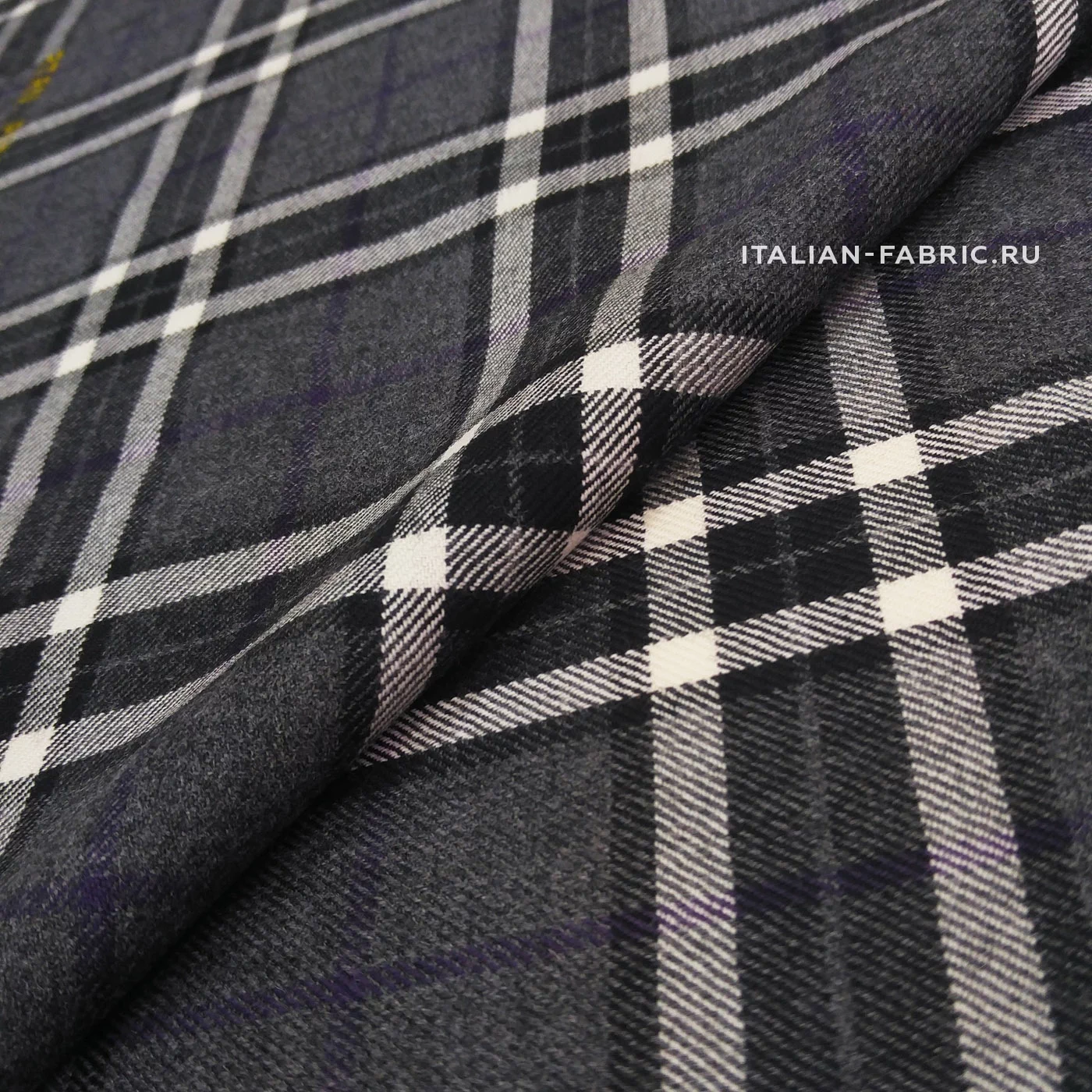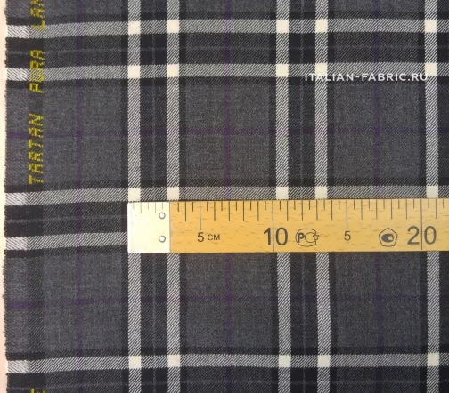 Изумительного качества фирменная шотландка. Основной фон - темно-серый, полоска - фиолетовый. Очень мягкая, пластичная, шелковистая. Для костюмов, сарафанов, платьев, юбок, брюк.