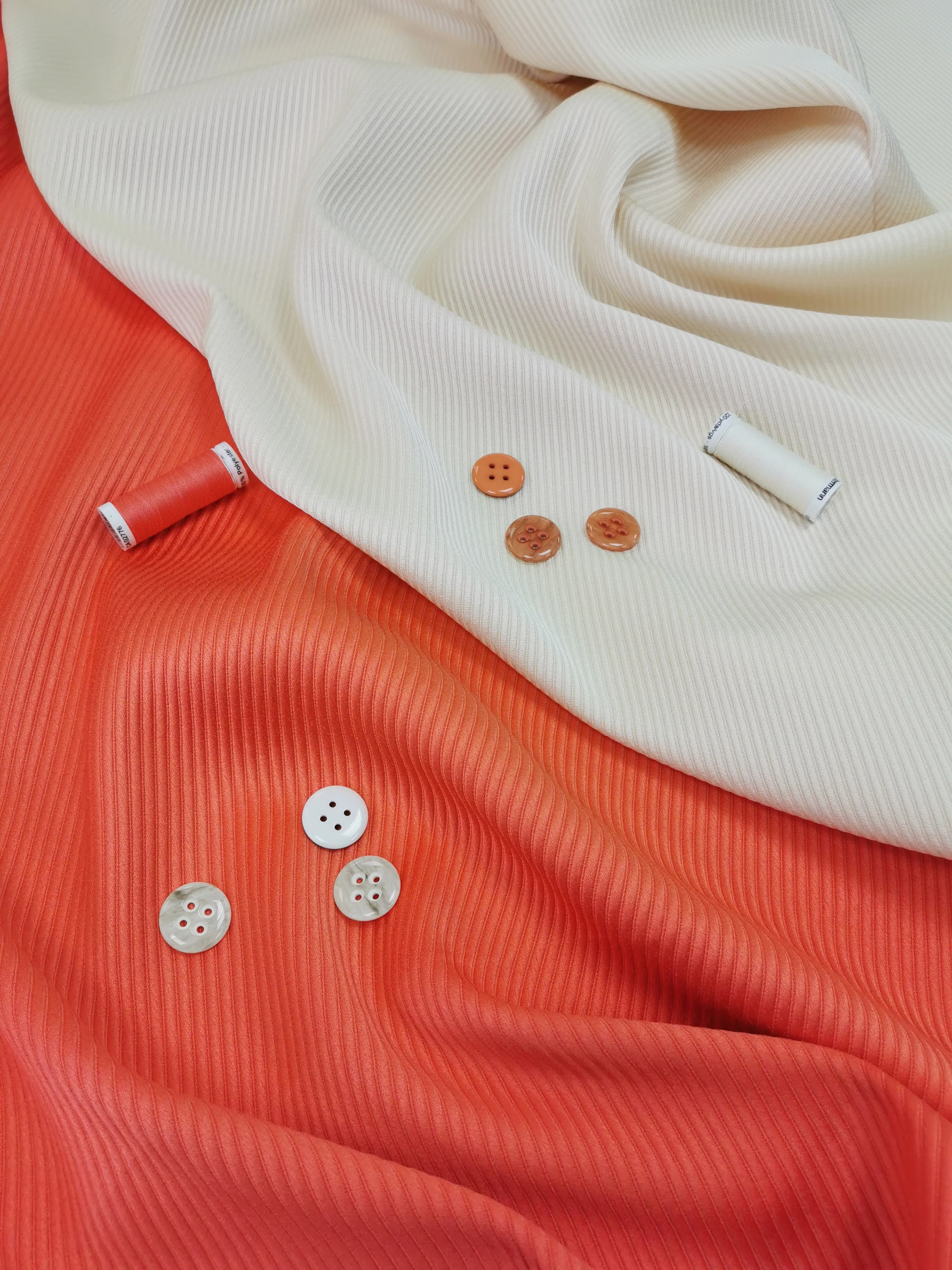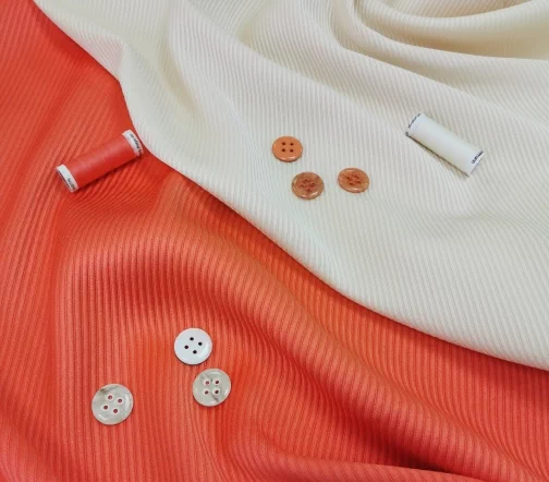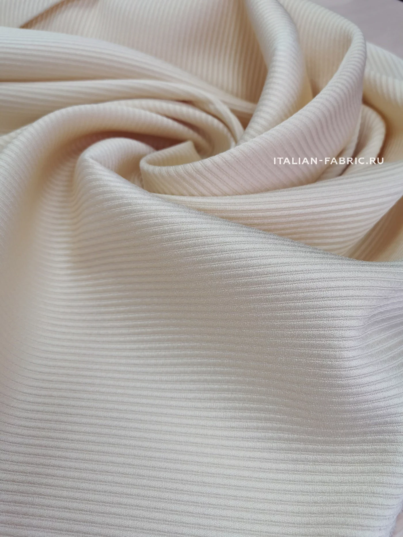 Изящный цвет, интересная фактура и атласный блеск для эффектных костюмных ансамблей. Костюмная ткань на основе шерсти и вискозы благородного молочного цвета. Материал с восхитительной фактурой – диагональным рубчиком. За счет наличия вискозы в составе полотно имеет атласный блеск, что в сочетании с его фактурой, смотрится очень выразительно и стильно.