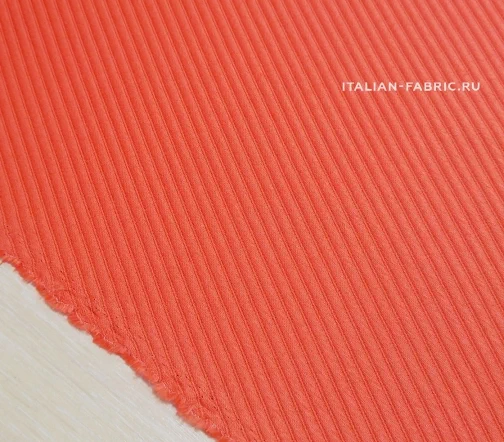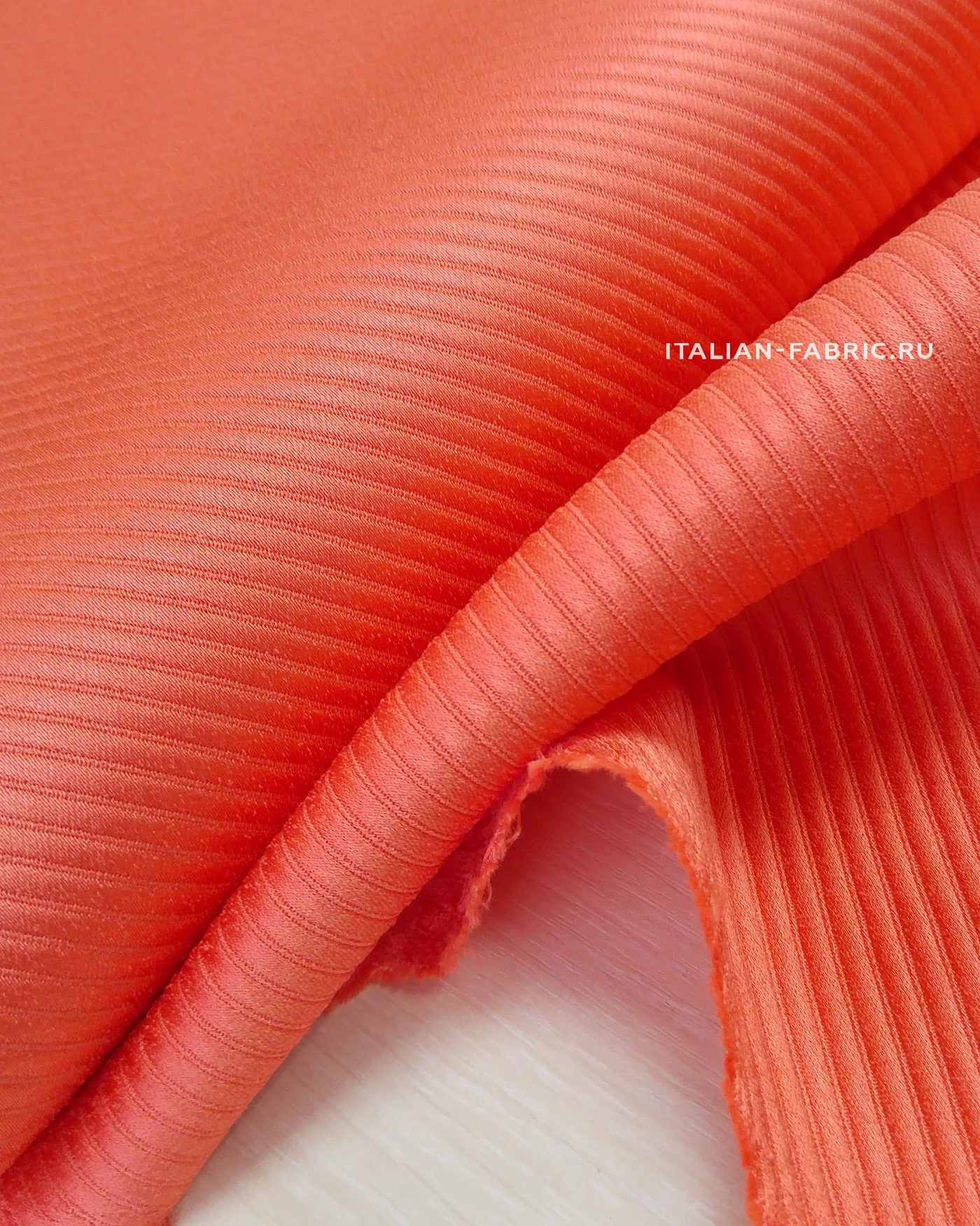 Яркий цвет, интересная фактура и атласный блеск для эффектных костюмных ансамблей. Костюмная ткань на основе шерсти и вискозы изумительного оранжево-кораллового оттенка. Материал с восхитительной фактурой – диагональным рубчиком. За счет наличия вискозы в составе полотно имеет атласный блеск, что в сочетании с его фактурой, смотрится очень выразительно и стильно.