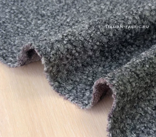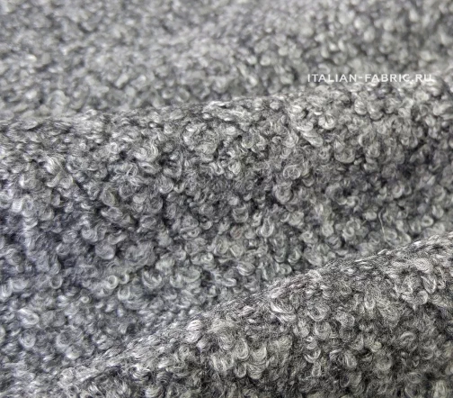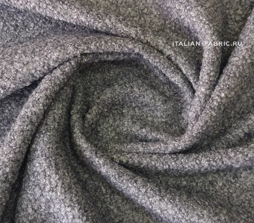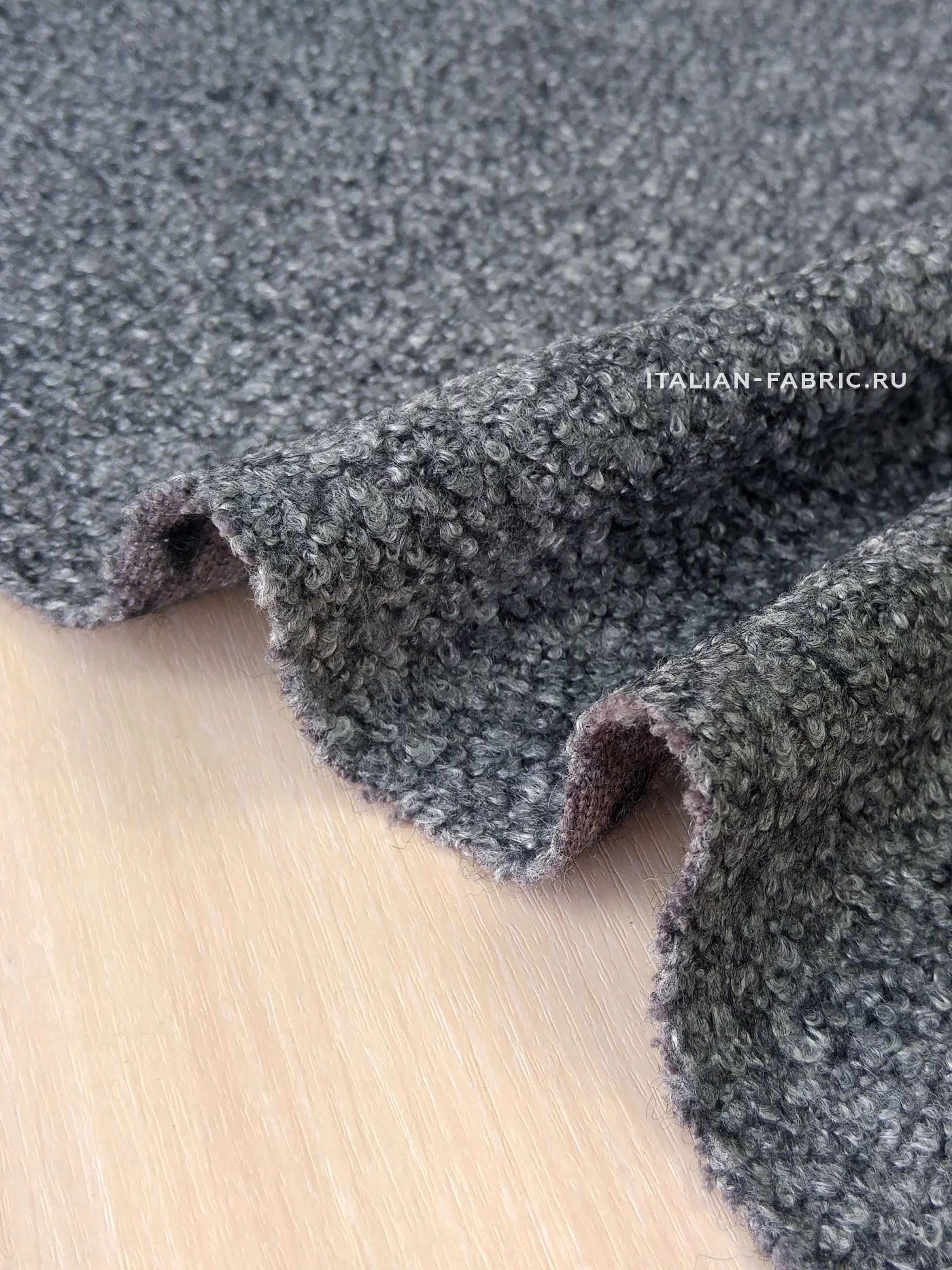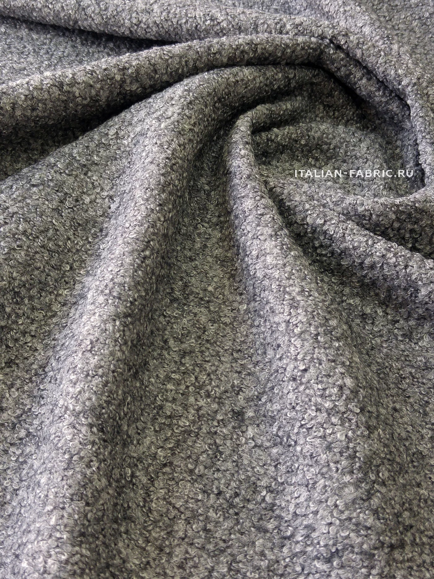 Костюмно-пальтовое букле на трикотажной основе. Оригинальная объемная узелковая фактура букле и серый меланжевый цвет полотна вместе делают материал еще интереснее. Для пошива пальто, курток, бомберов, жакетов.