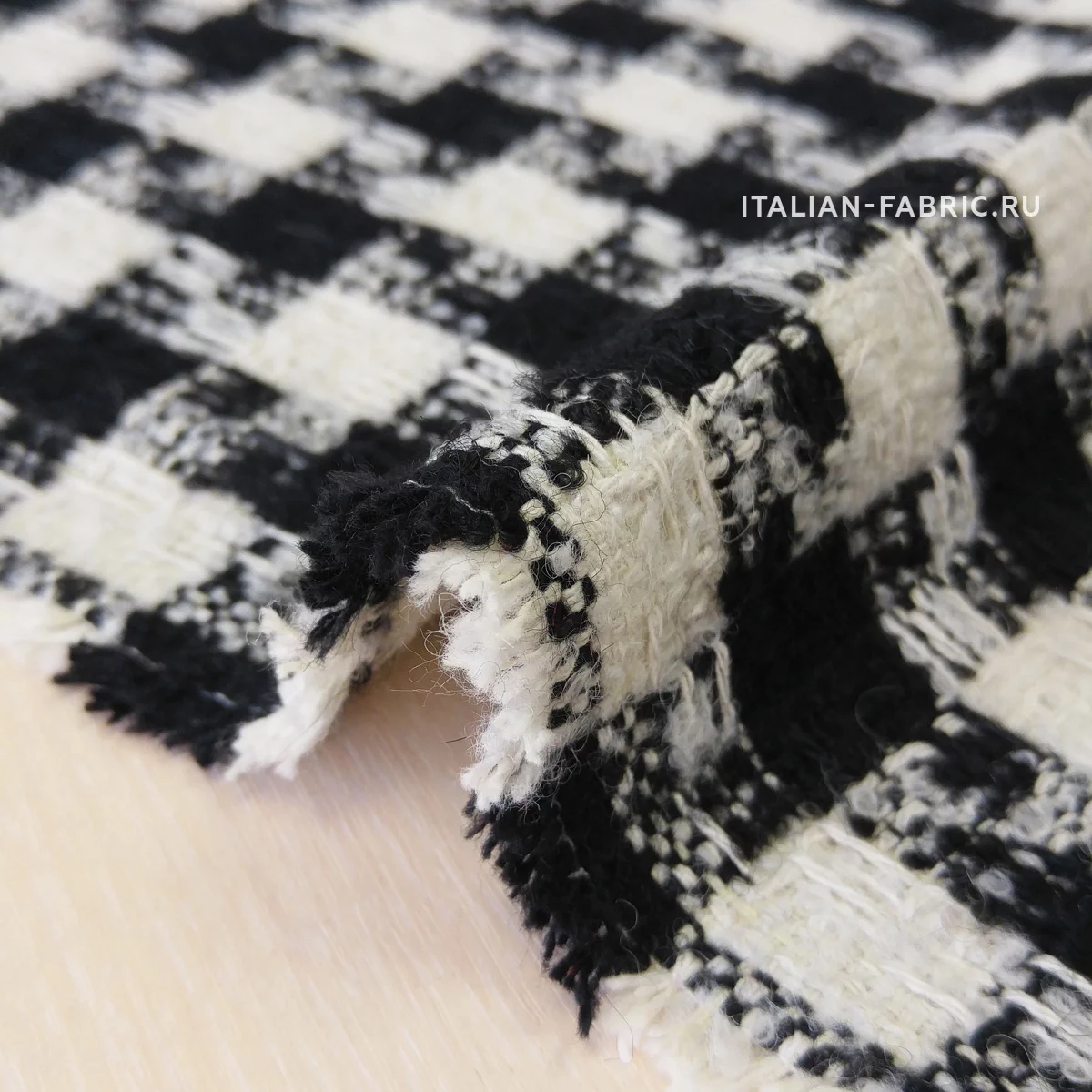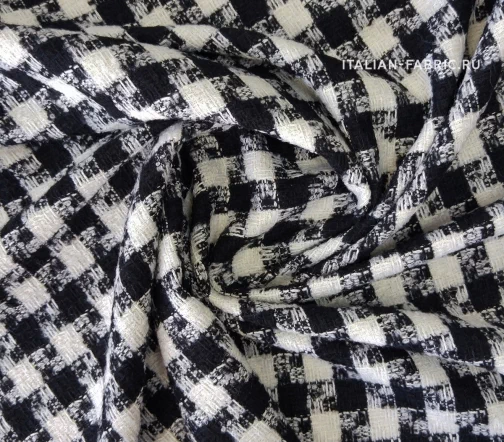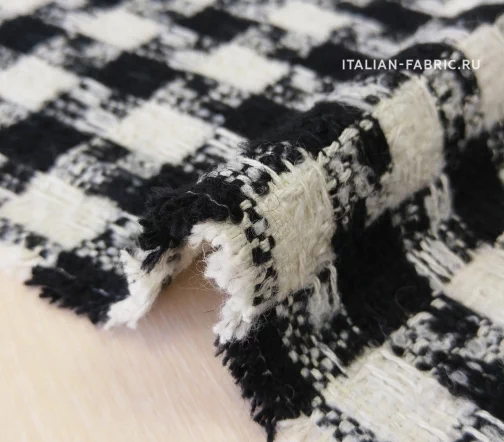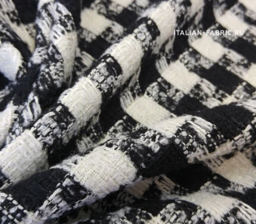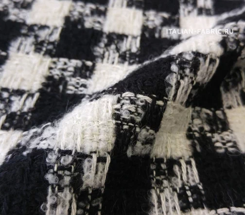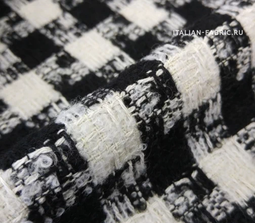 Шерстяночка средней плотности, шикарная по качеству, в классическом сочетании молочного и глубокого черного цветов, с легким эффектом букле. Универсальная в применении. Прекрасно подходит для пошива теплых костюмных ансамблей, жакетов, юбок, а также для пошива бомберов, курток, полупальто и легких пальто.