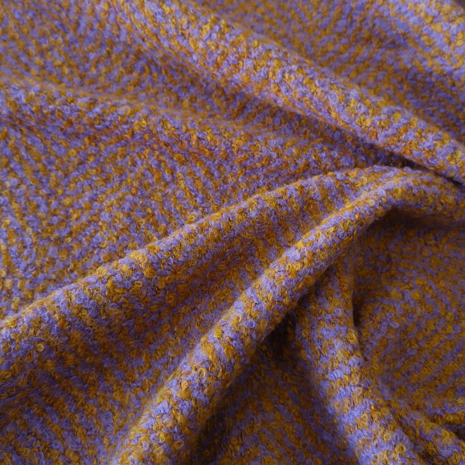 Прекрасного качества, изумительное по красоте итальянское костюмное букле. Материал шикарного меланжевого синего цвета, средней плотности, приятный тактильно. Прекрасно подходит для пошива теплых костюмных ансамблей, жилеток, жакетов и юбок.
