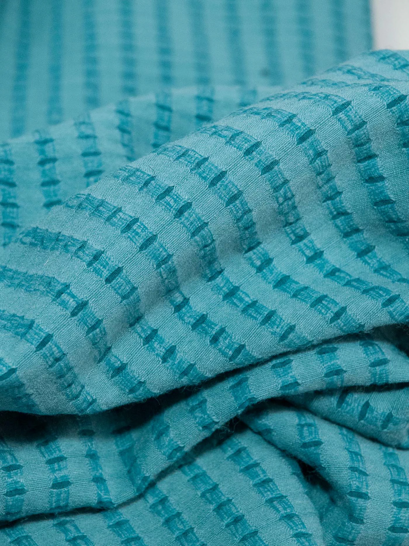 Серо-голубая, перфорированная костюмка (за счет переплетения нитей и органзы) с ноткой бирюзы основного фона. Тонкая, мягкая, такльно очень приятная, уютная. Для пошива платье, юбок, легких и теплых костюмчиков.