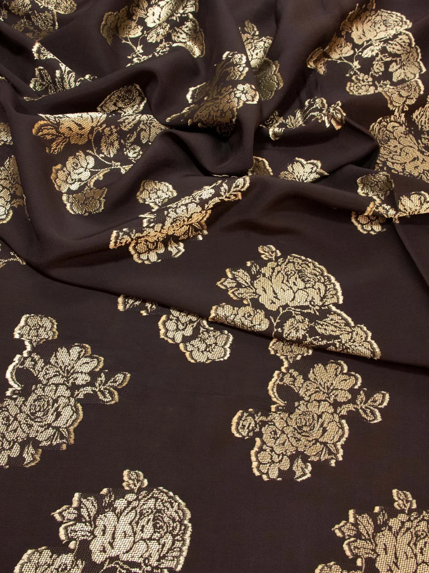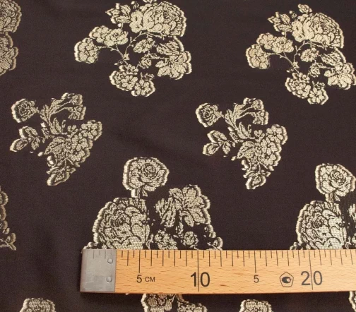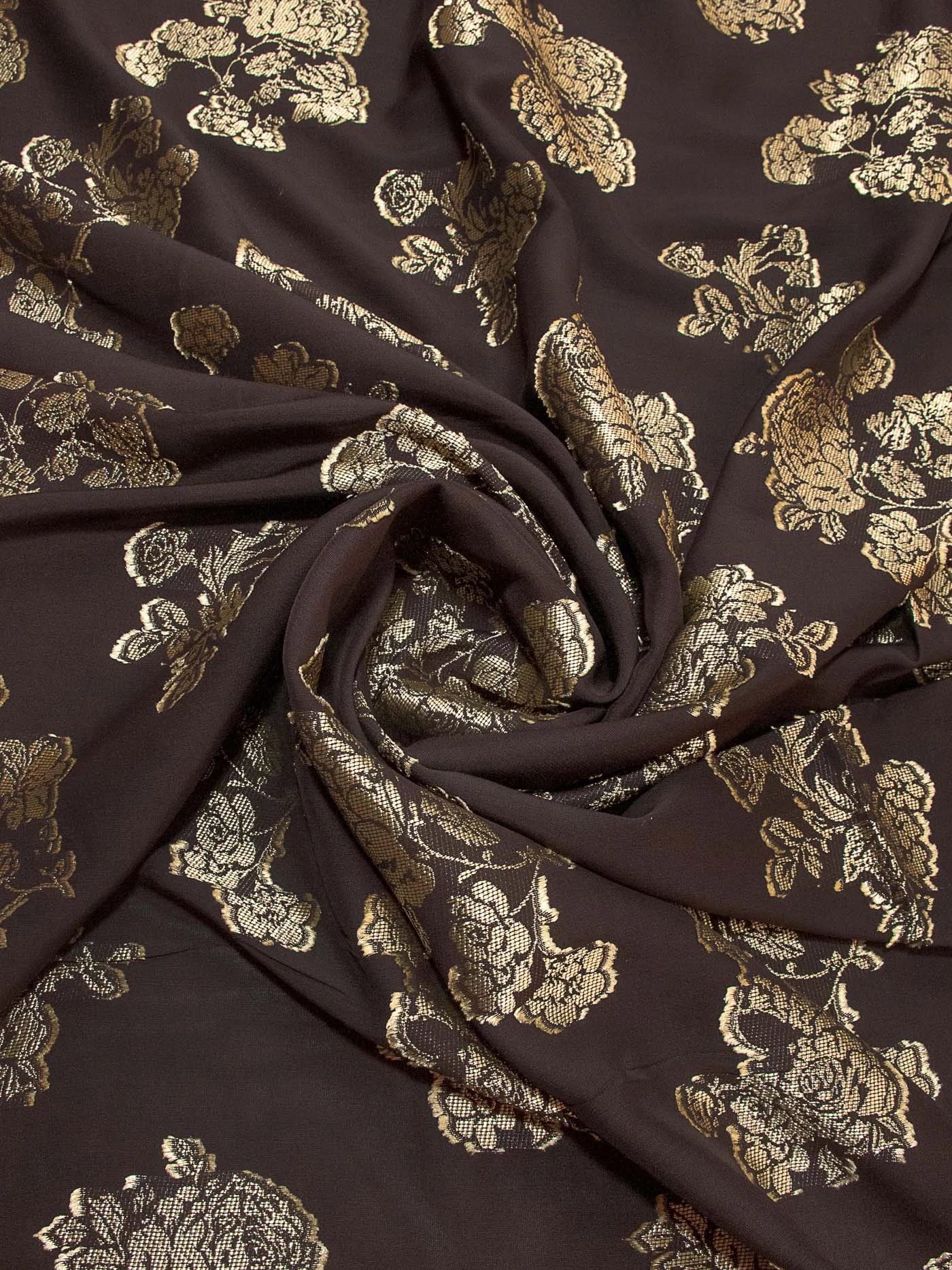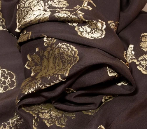 Основной фон коричневый (шоколадный), оттенок тёплый, цветы золотые. Просвечивает.