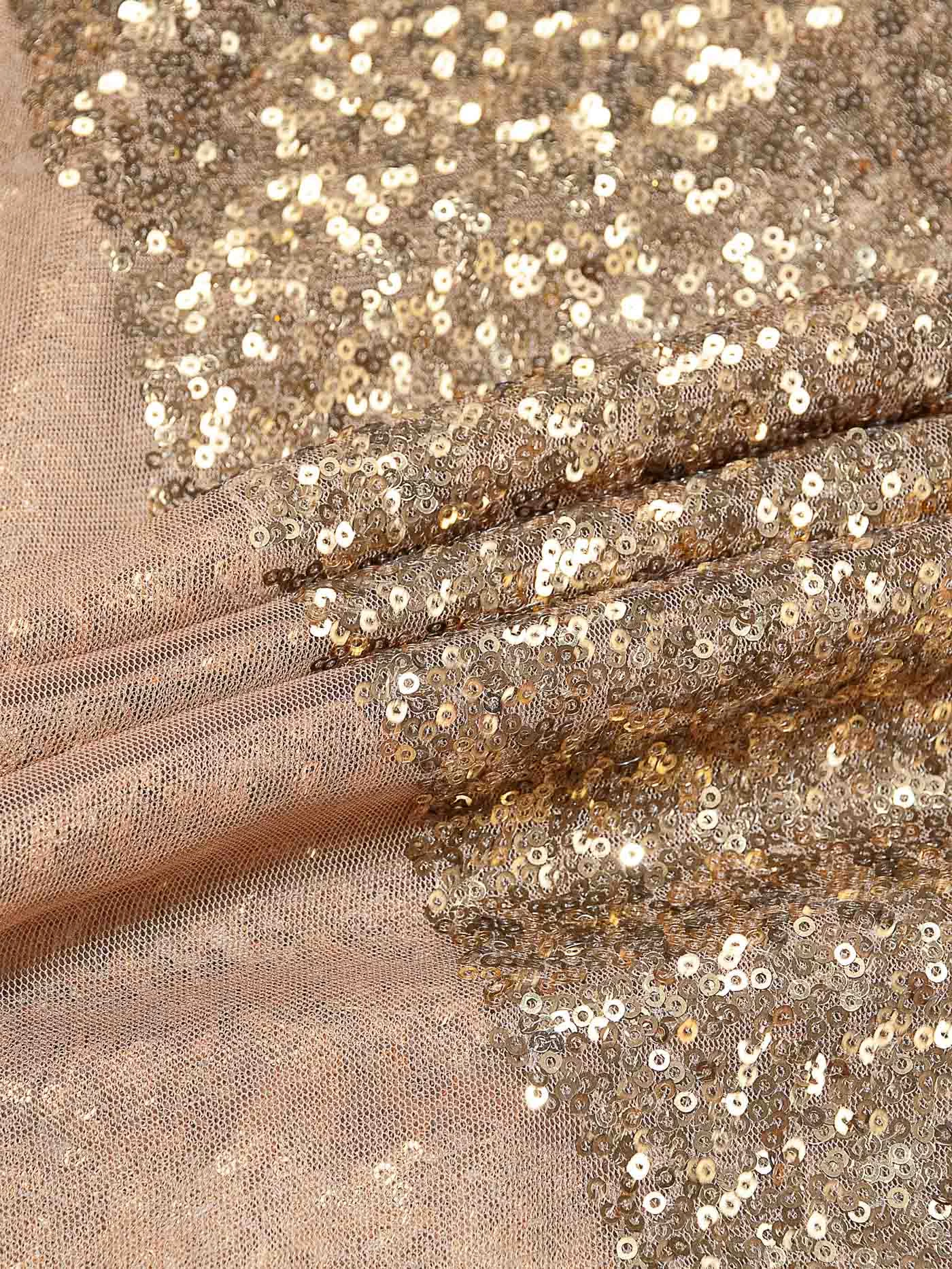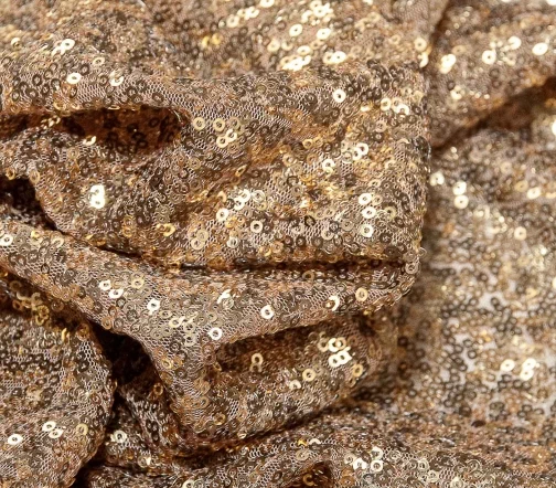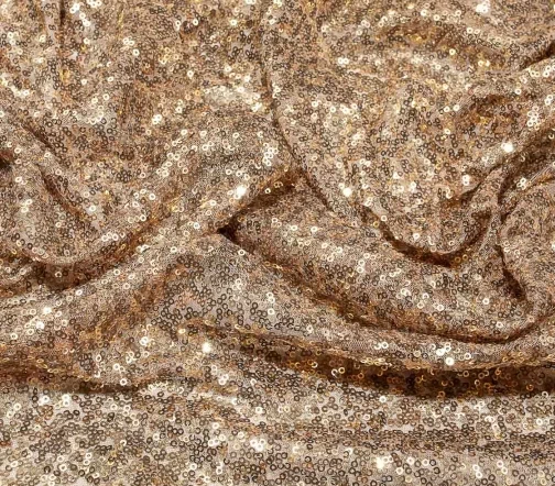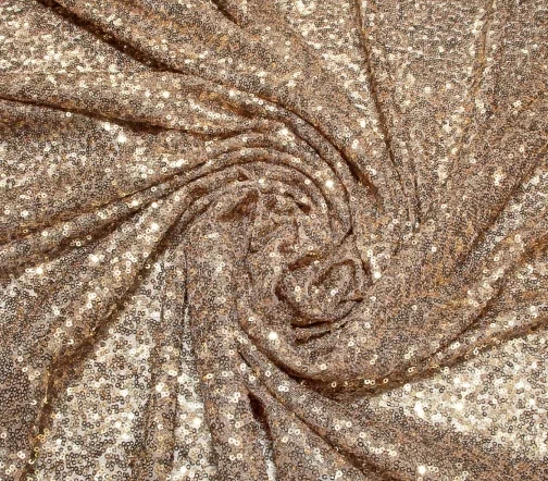 Ткань с пайетками диаметром 2,5 мм. Основа - трикотажная сетка. Рабочая ширина 135 см. Для пошива роскошных топов, платьев, юбок, а также в качестве компаньона к бархату, велюру, шелку, футеру и др. тканям. И, конечно, для декорирования отдельных элементов одежды для придания индивидуального стиля.