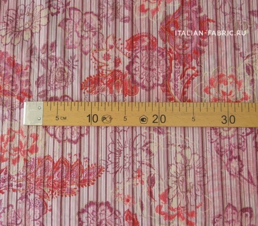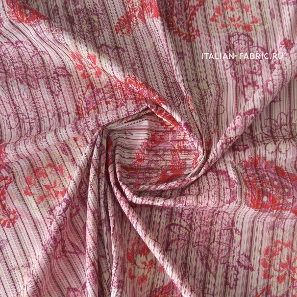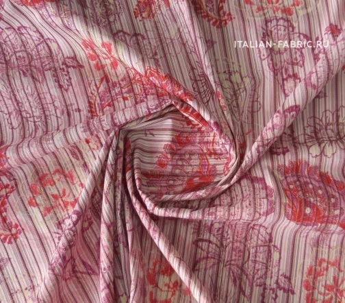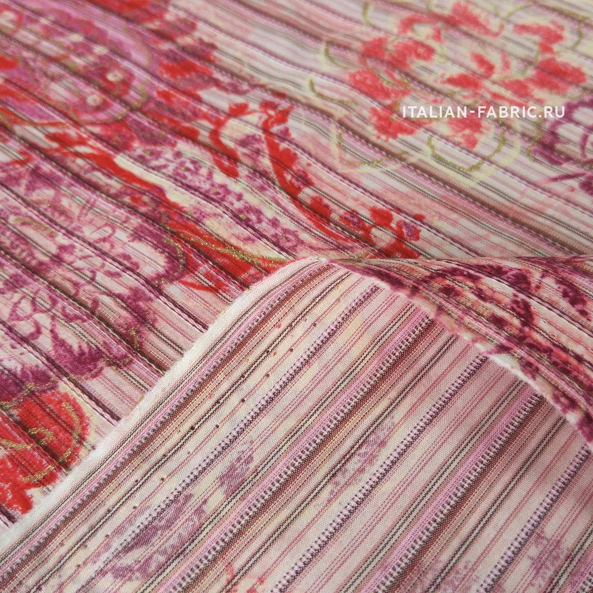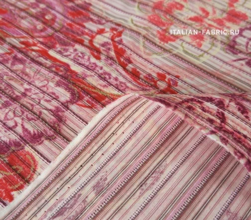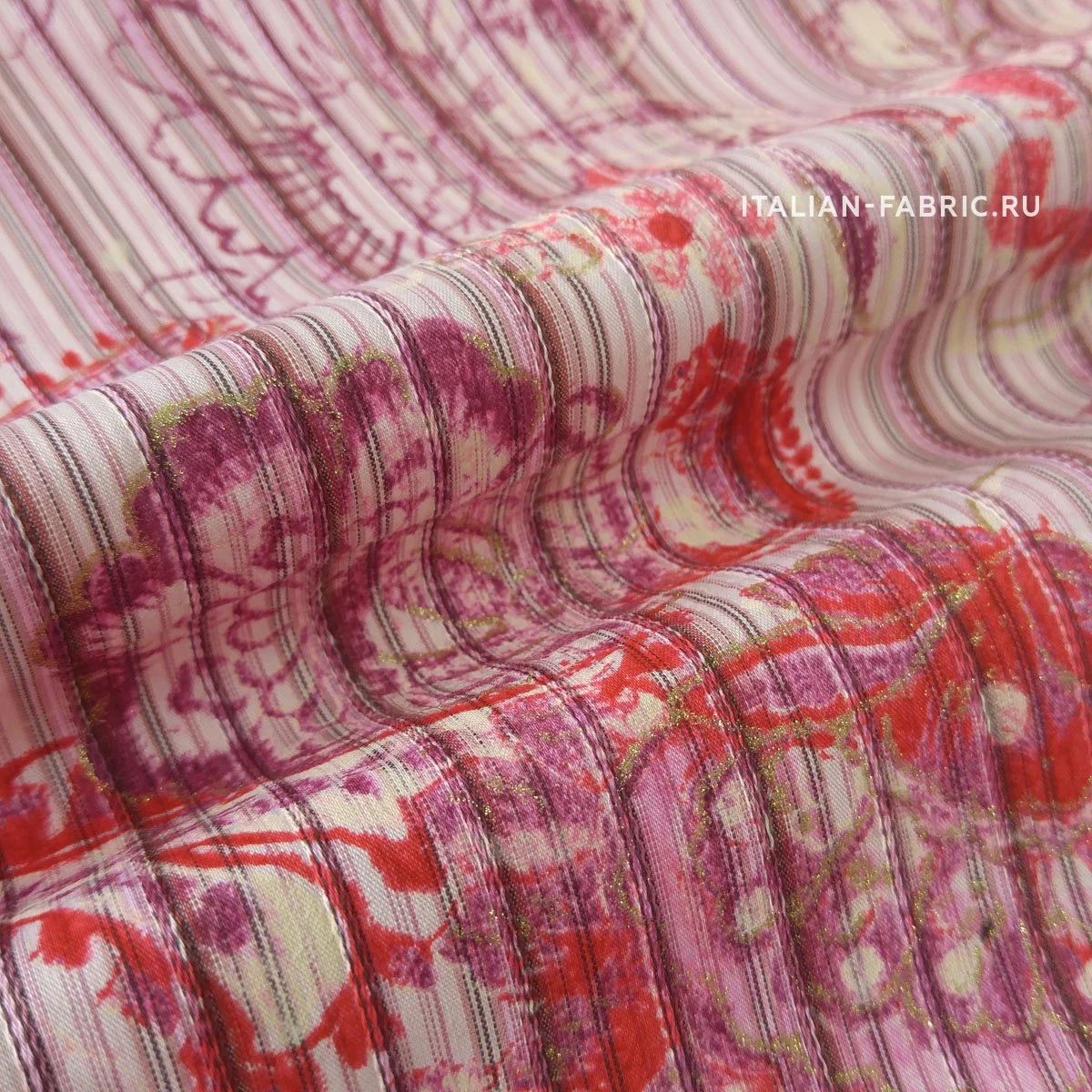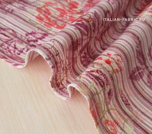 Чудесная и пластичная, жаккардовая сорочечная ткань, с цветочным принтом и накатом золота. Основной фон сливочный. Принт свекольно-розовый. Для пошива красивых сорочек и батников, а также любых летних изделий от шорт до платьев.