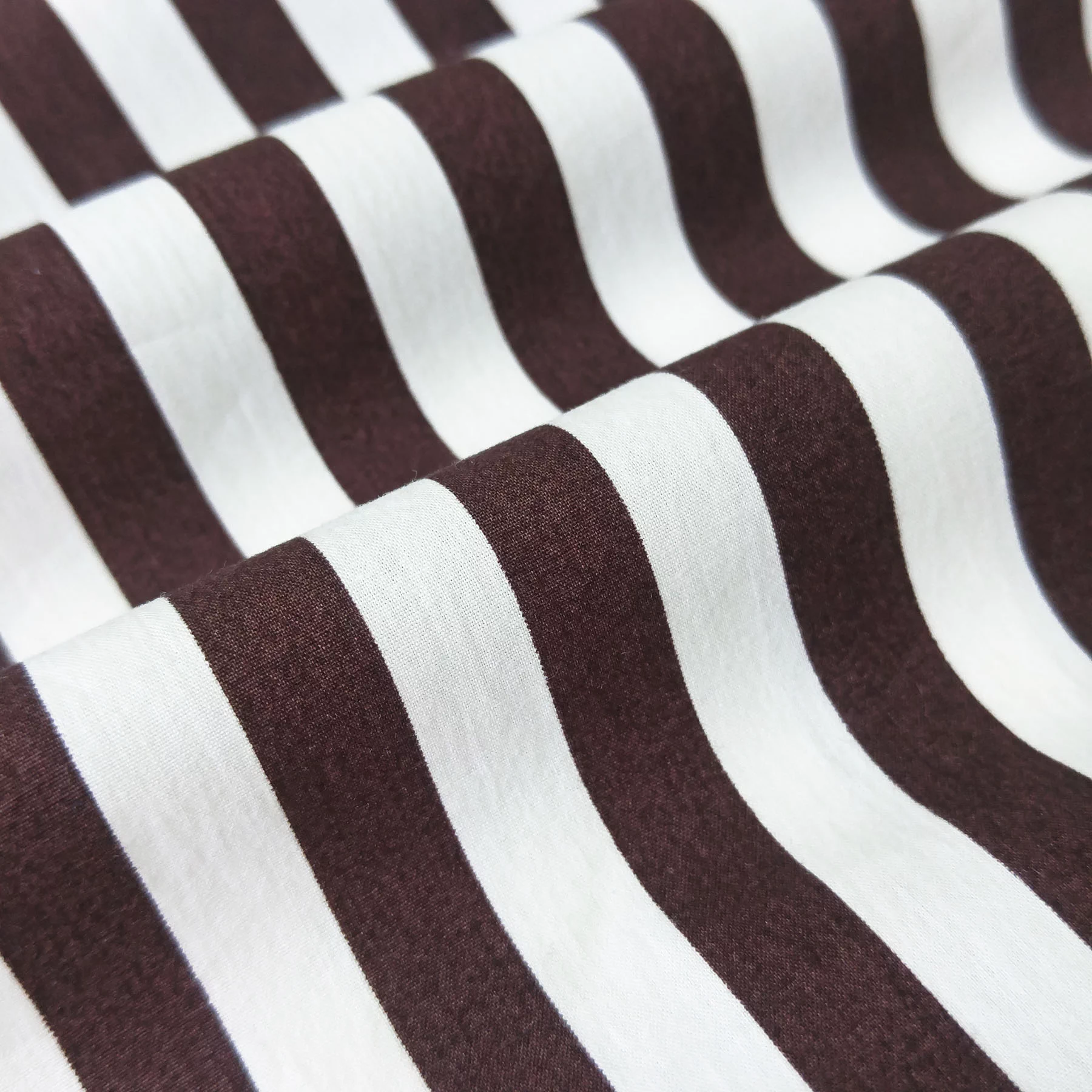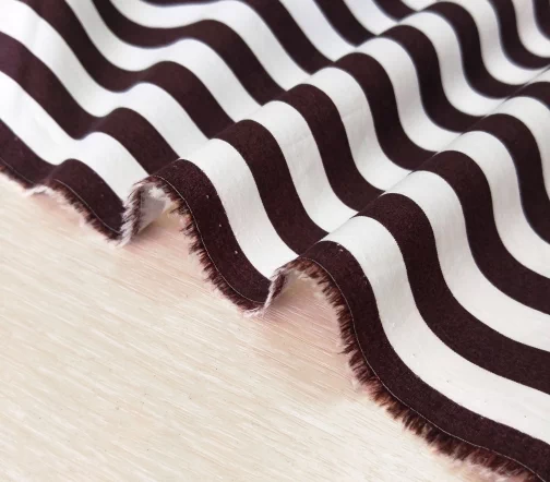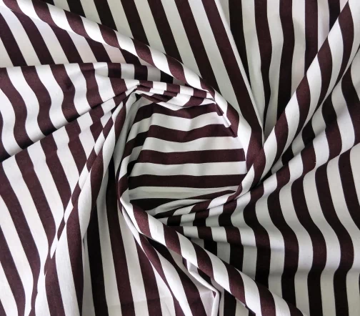 Сорочечная ткань средней плотности ближе к тонкой в полоску шириной 1,0см каждая. Сочетание цветов: молочный и коричневый. Для пошива сорочек на любой сезон, летних топов, блуз, туник, сарафанов, платьев и юбок.