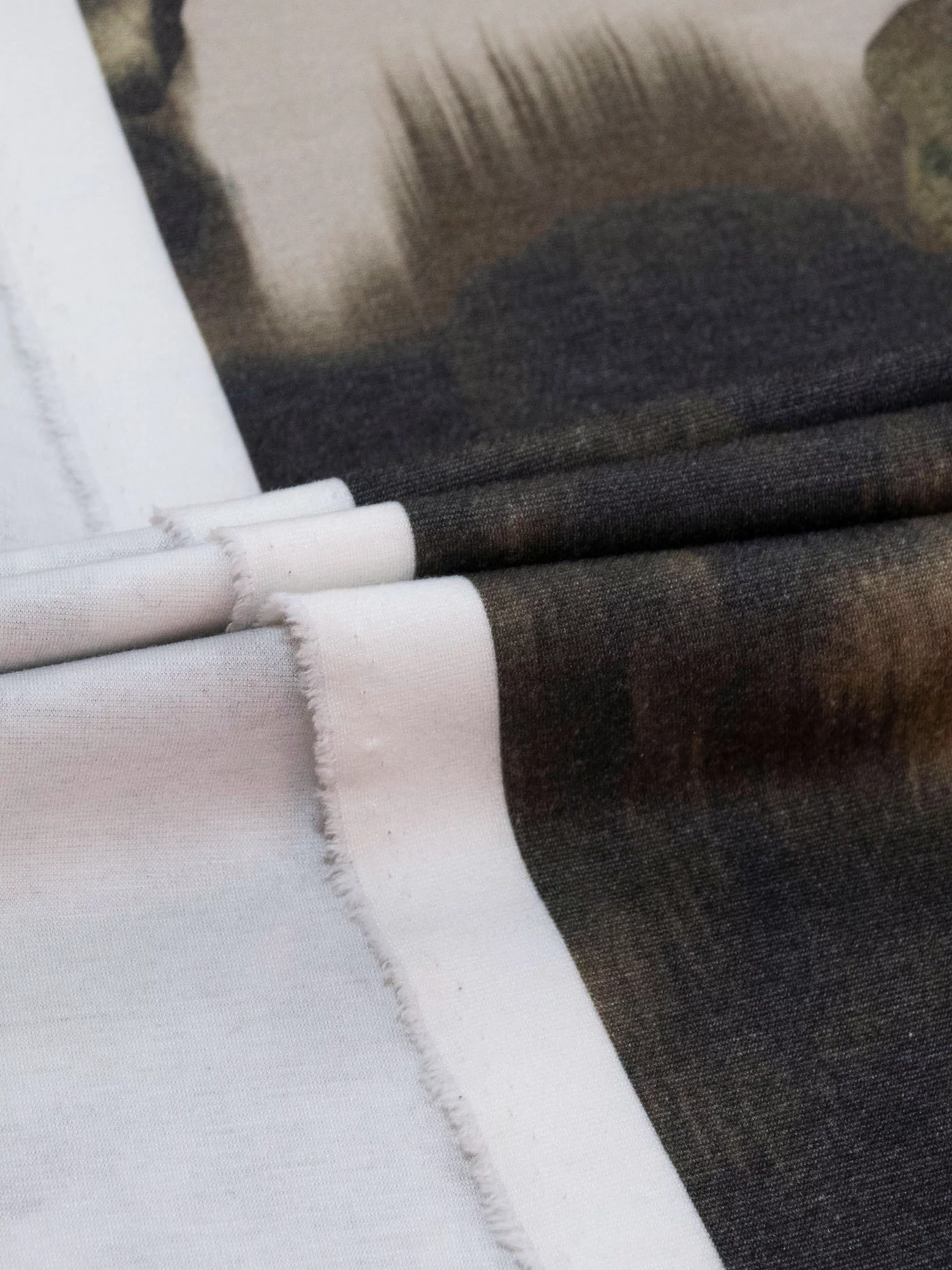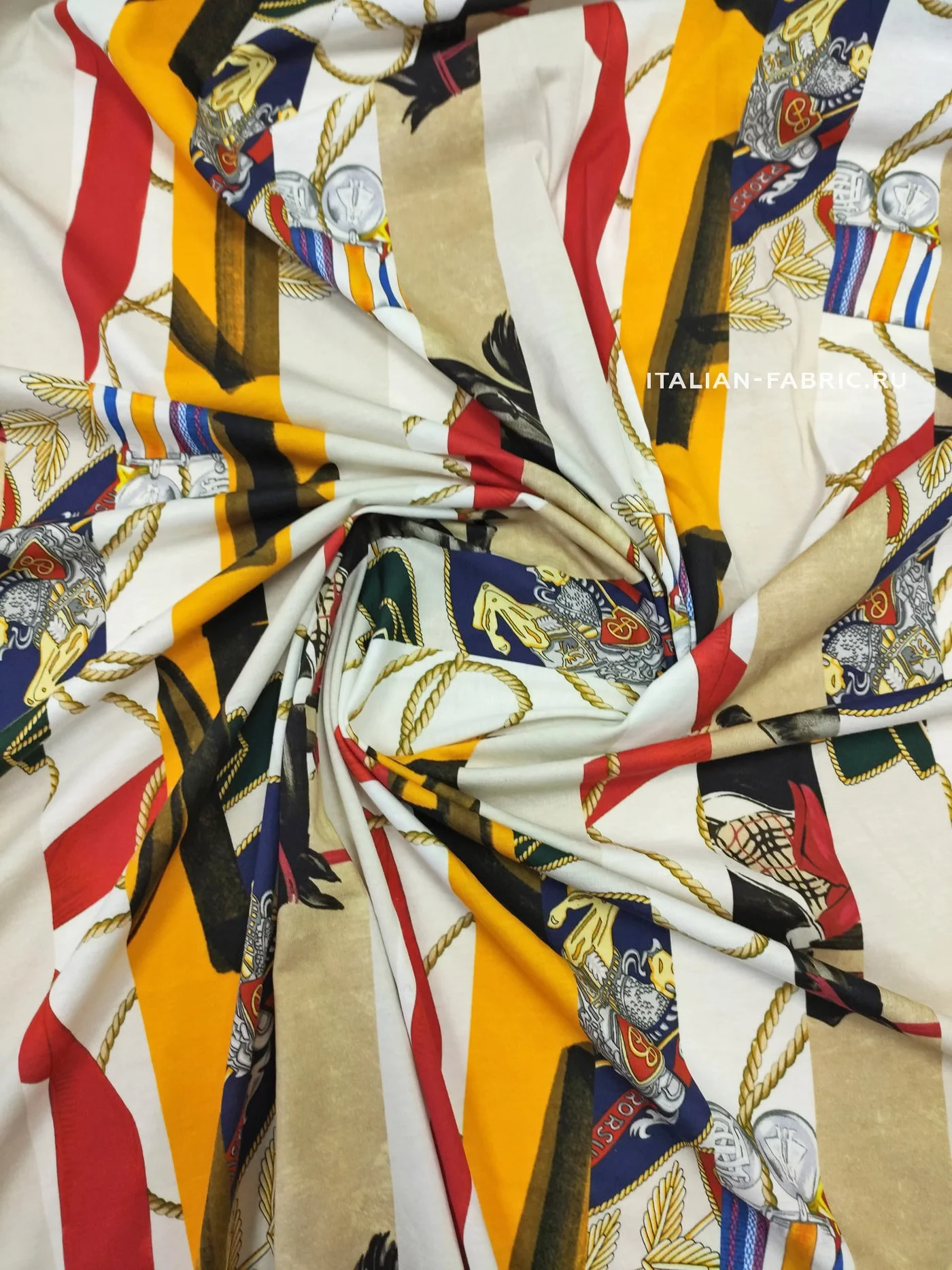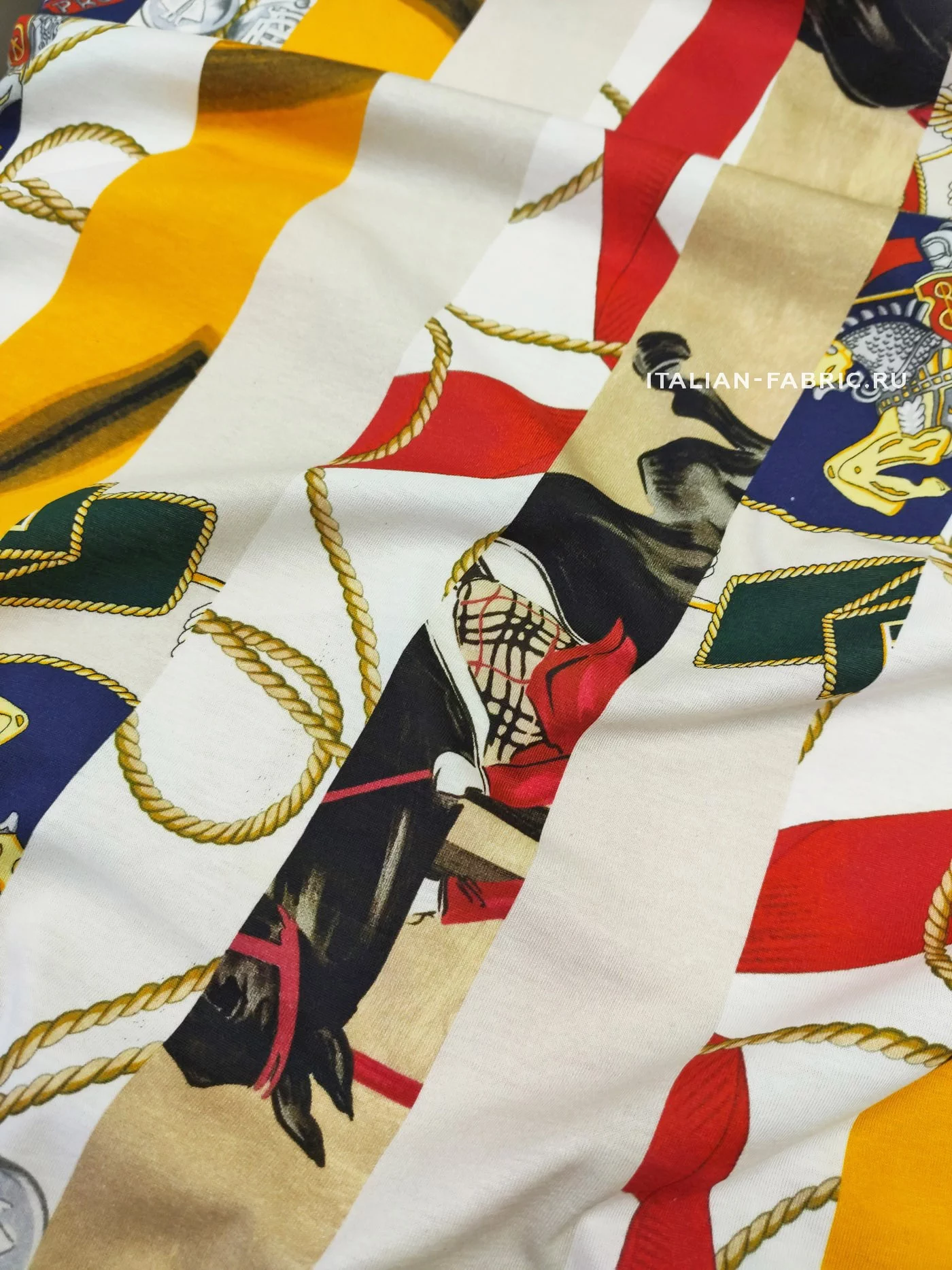 Легкий трикотаж с мелким повторяющимся принтом животных и заглавной буквой K. Подойдет для пошива на футболки, водолазки и спортивной одежды.