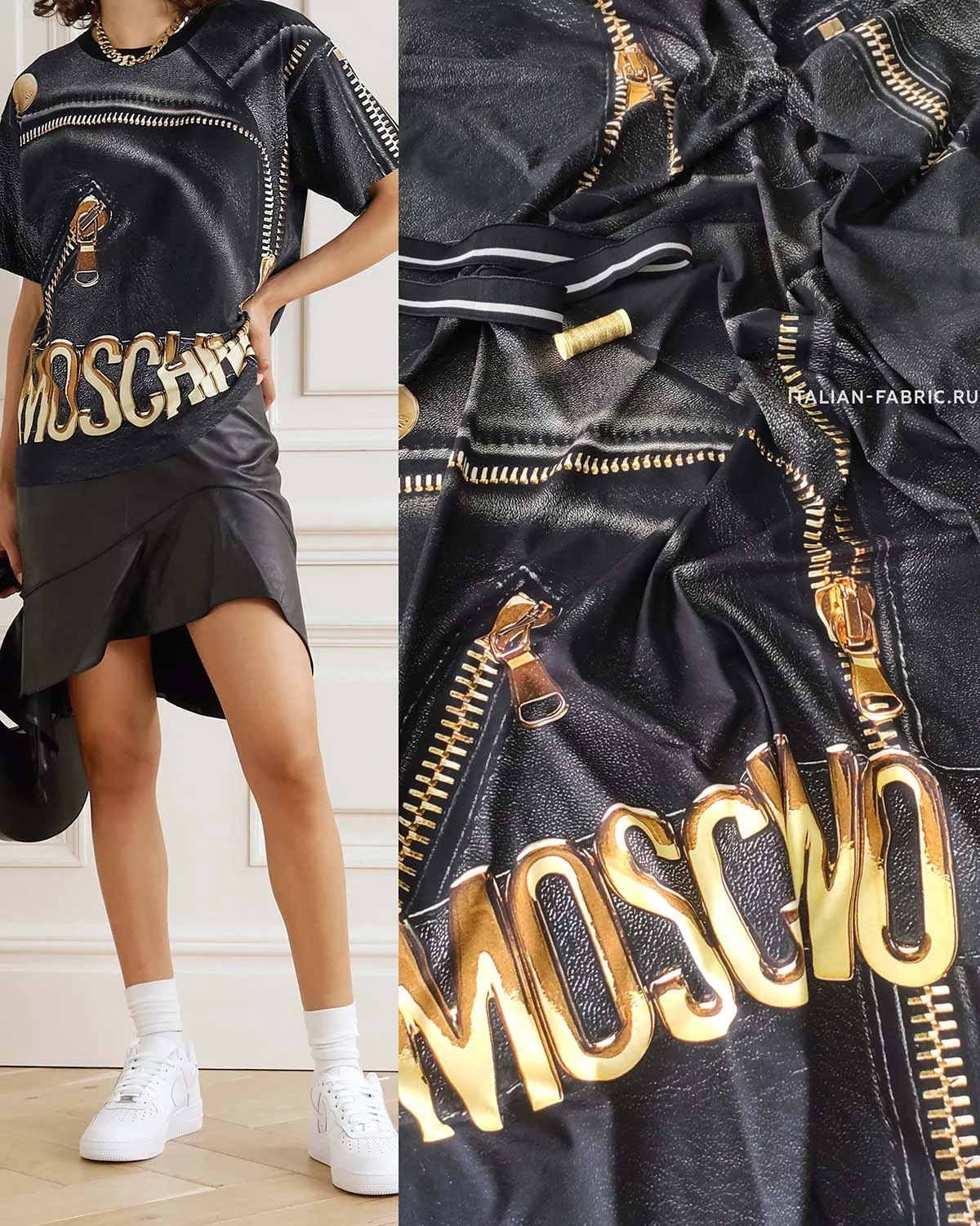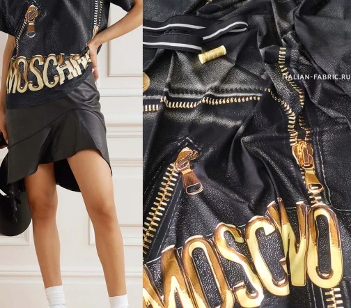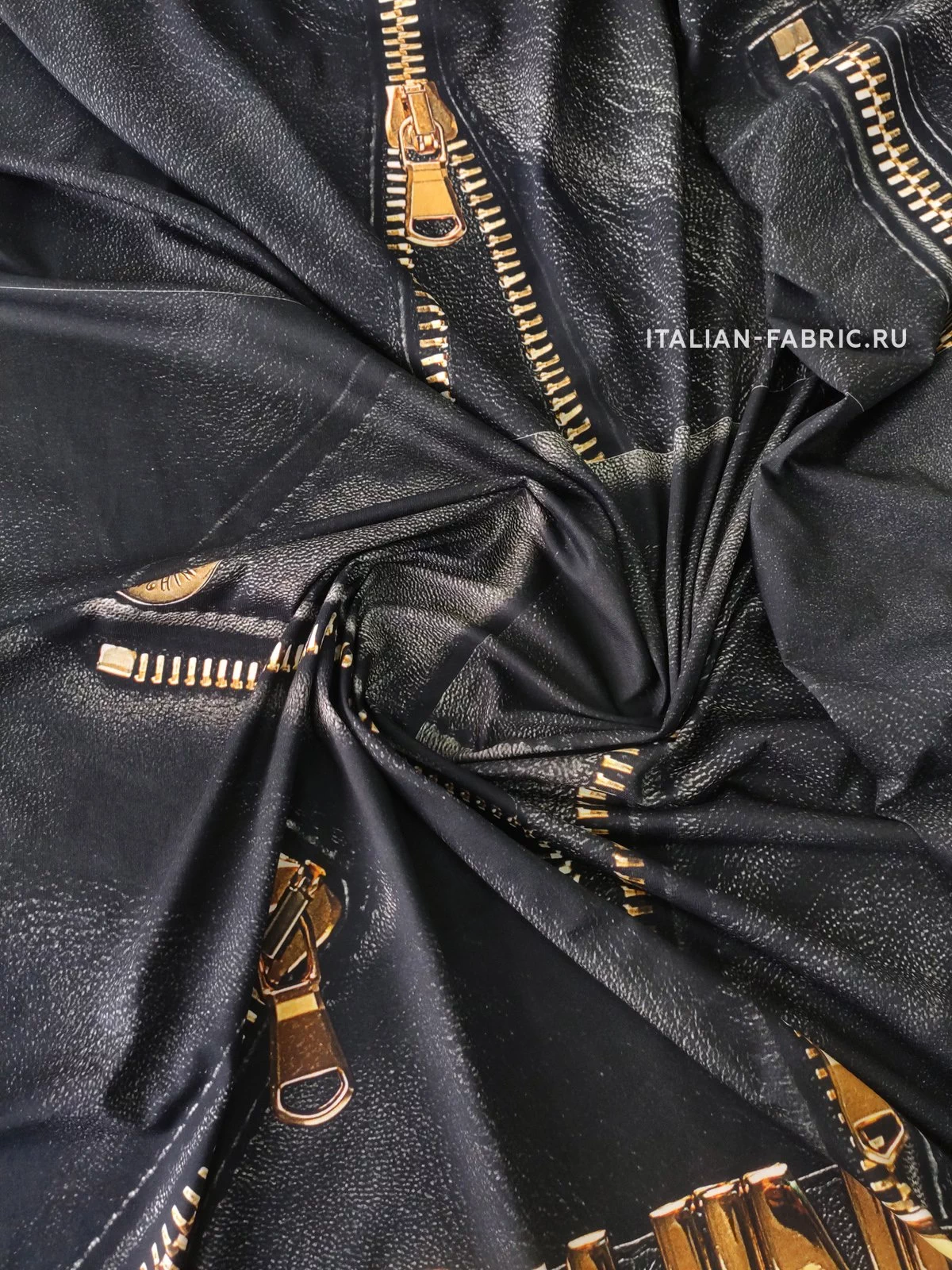Высота купона 130 см. Врум врум... К нам подъехал дерзский и стильный байкерский купон от именитых затейников Moschino. Думаете это кожа? Нет, это купонный трикотаж с ультра детализированным принтом с молниями Raccagni. Ткань вобрала в себя грацию настоящей итальянской косухи с выразительной золотой металлофурнитурой и удобство в уходе и носке трикотажного изделия. Тонкое, пластичное полотно, средней плотности, по качеству ближе к "сухому".️ Купон (высота 130см) состоит из расчерченного под крой 4х элементов для футболки/лонгслива: