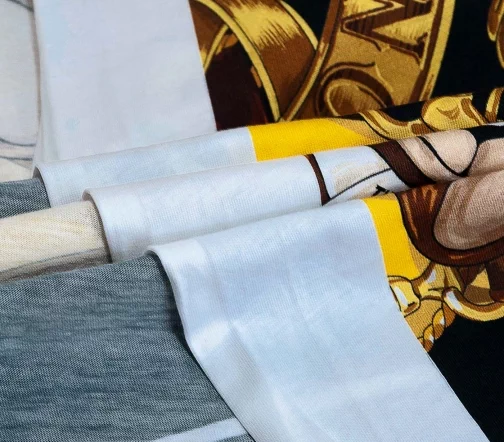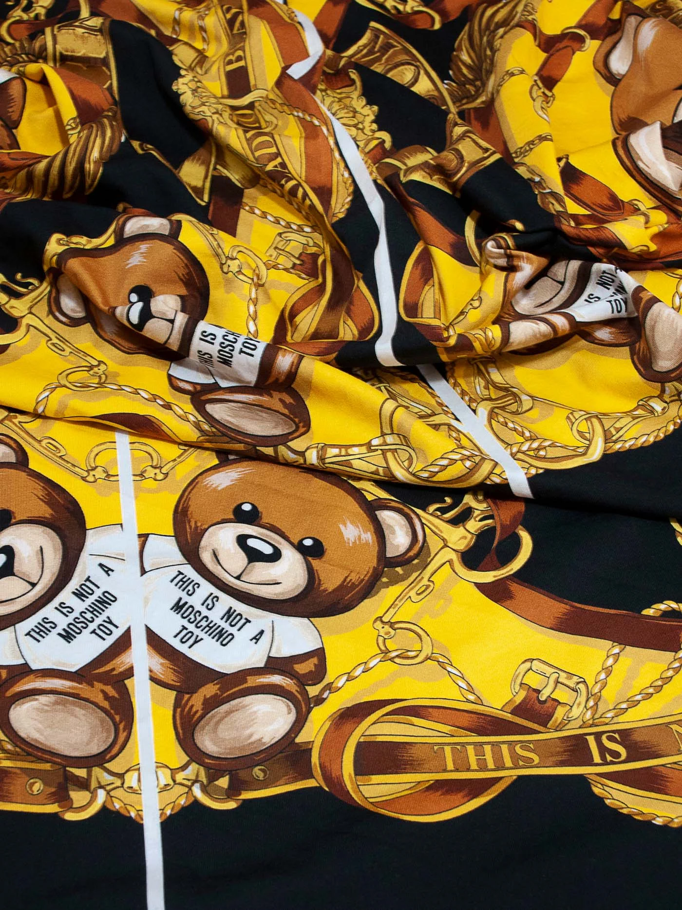 Комплект деталей от Moschino для пошива стильной брендовой футболки. Сама ткань не сильно мнётся, тактильно приятная и не просвечивает!