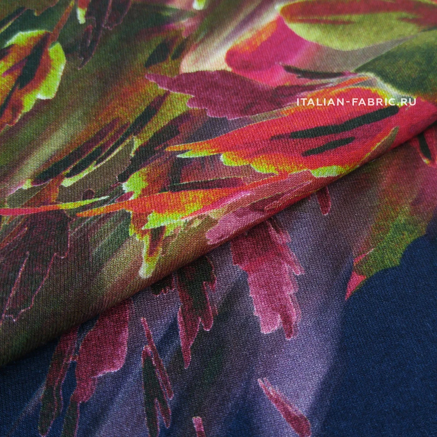 Отличного качество итальянский трикотаж черно-синего цвета. Края не закручиваются!