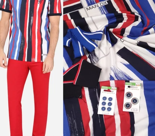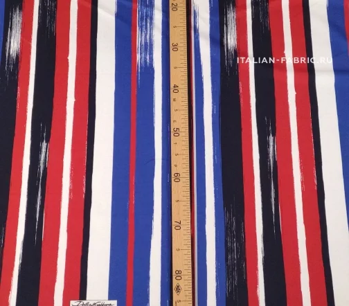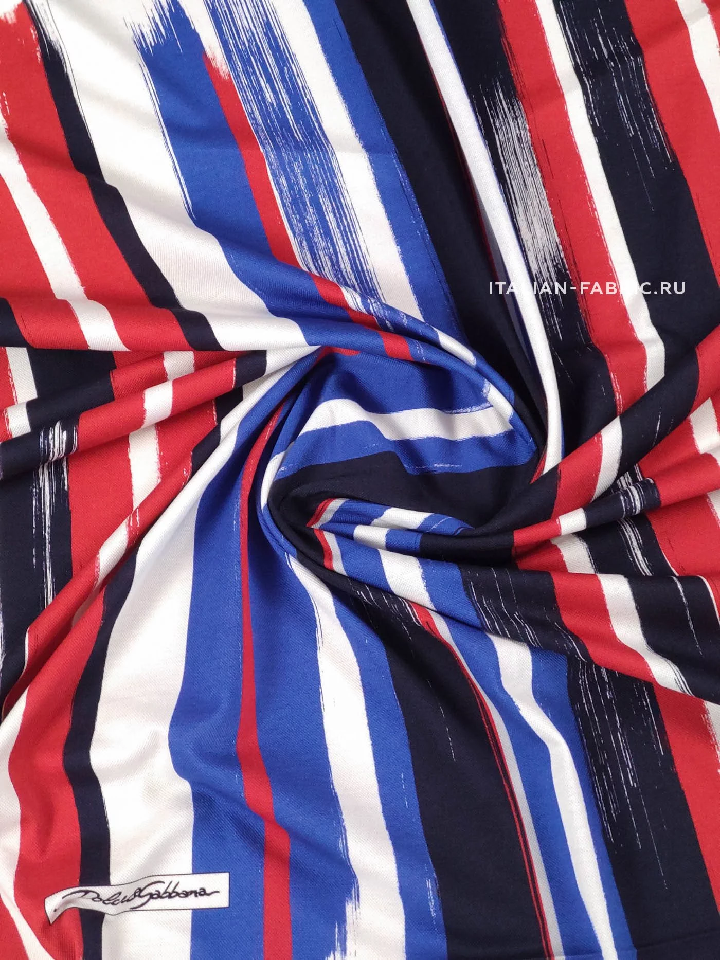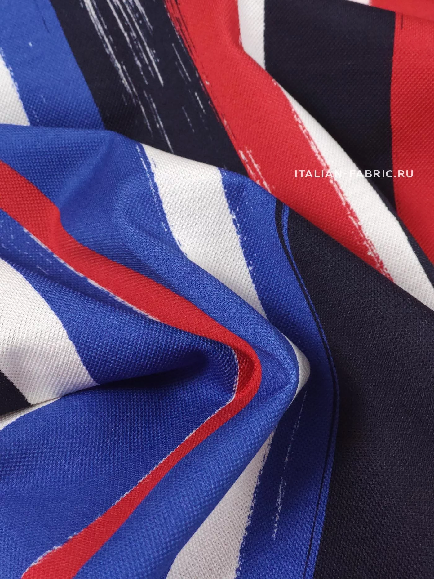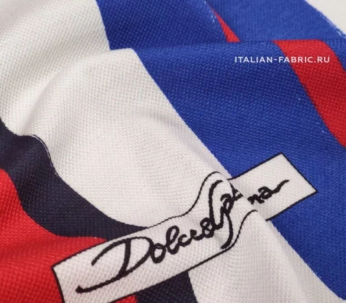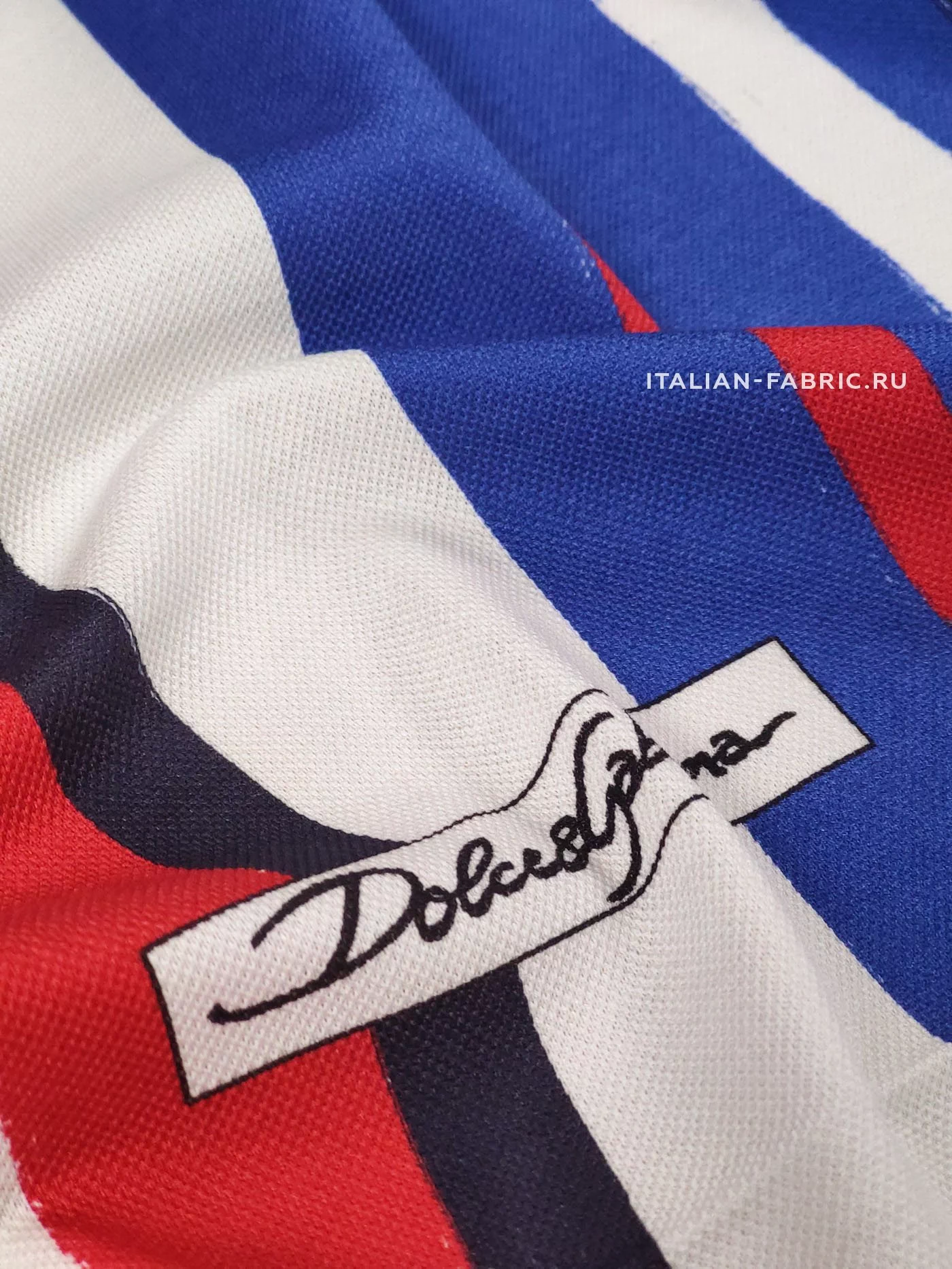 Итальянский трикотаж-пике от ДГ с принтом в полоску, выполненным в виде мазков кистью в ярких цветах и, конечно, брендовыми надписями. Прекрасное качество, принт "крой" для пошива рубашек поло и платьев в стиле "спортшик". Материал мягкий, пластичный и приятный на ощупь. Идеально подходящий воротничок и пуговицы - незаменимое дополнение вашего сшитого изделия!