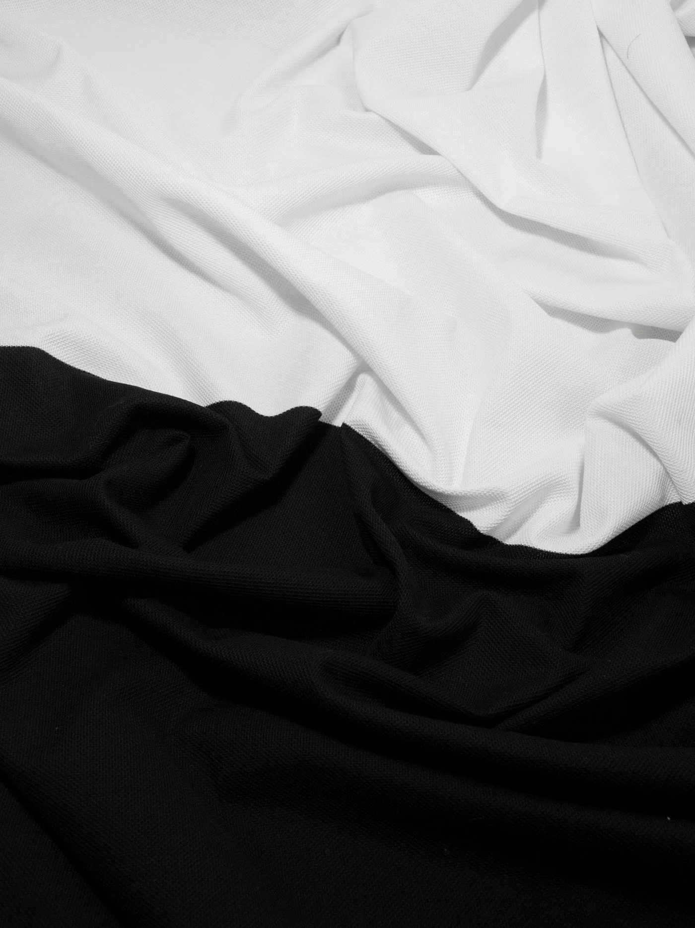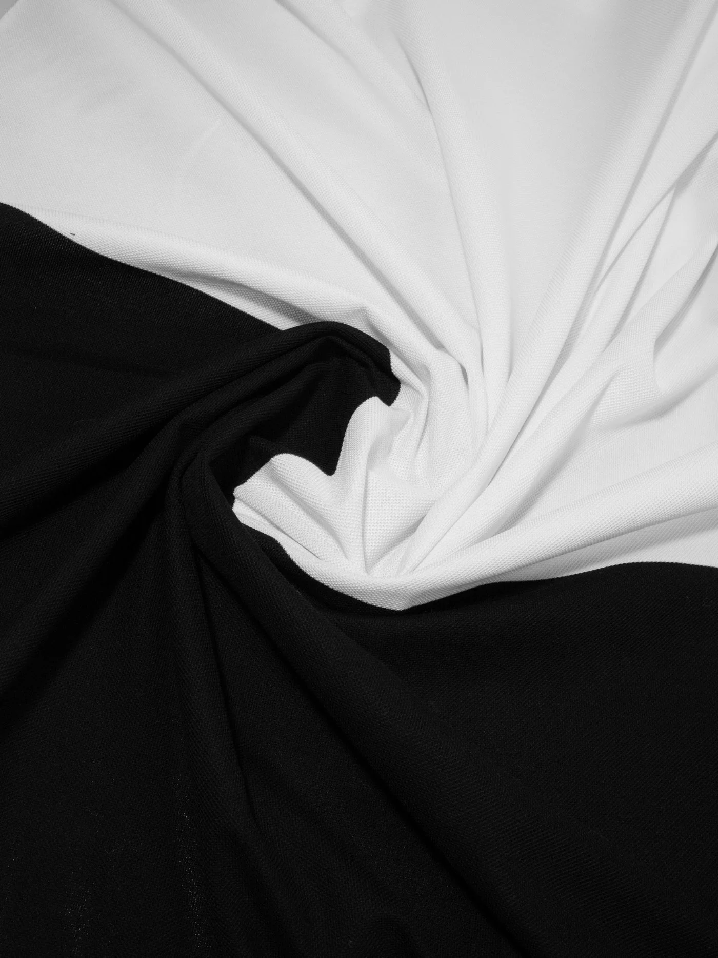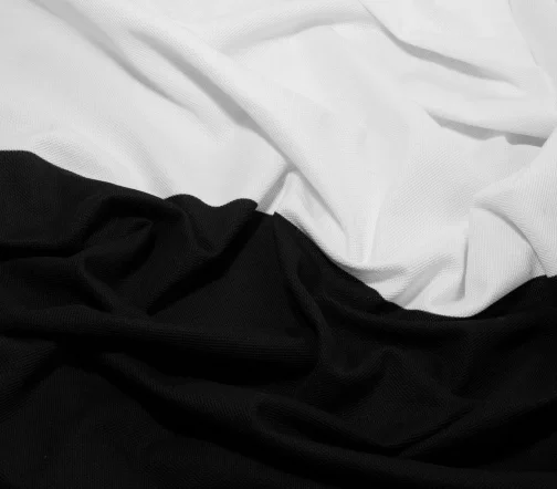 Высота купона 130см. В одном купоне две поперечные полоски (одна черная и одна белая) по 65 см. Фактурный вязаный трикотаж из хлопка. Материал хорошо растяжимый, в меру формоустойчивый - выгоднее всего будет сшить из него модный комплект из футболки-рубашки поло и, например, шорт или спортивное платье.
