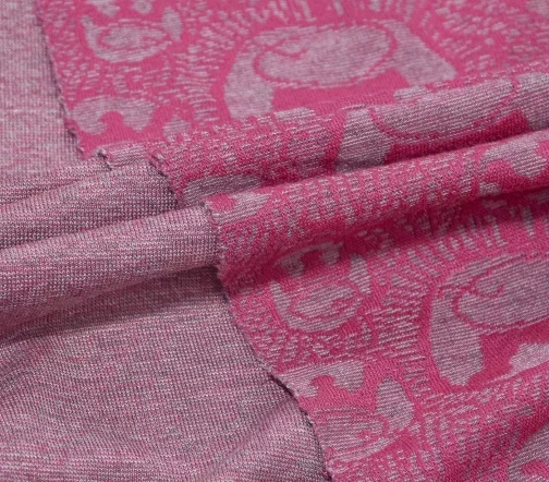 Средней плотности трикотаж, в сочетании светло-серого и ярко-розового цветов, за счет чего создается эффект меланжа, а также фирменный стиль от Save The Queen придает изюминку и даже таинственность этому трикотажу, пластичен. Для пошива стильных кофточек, туник, платья.