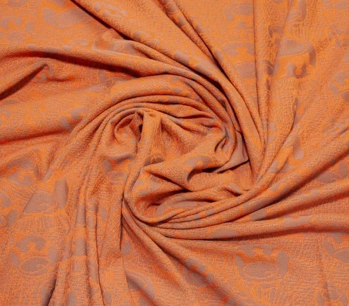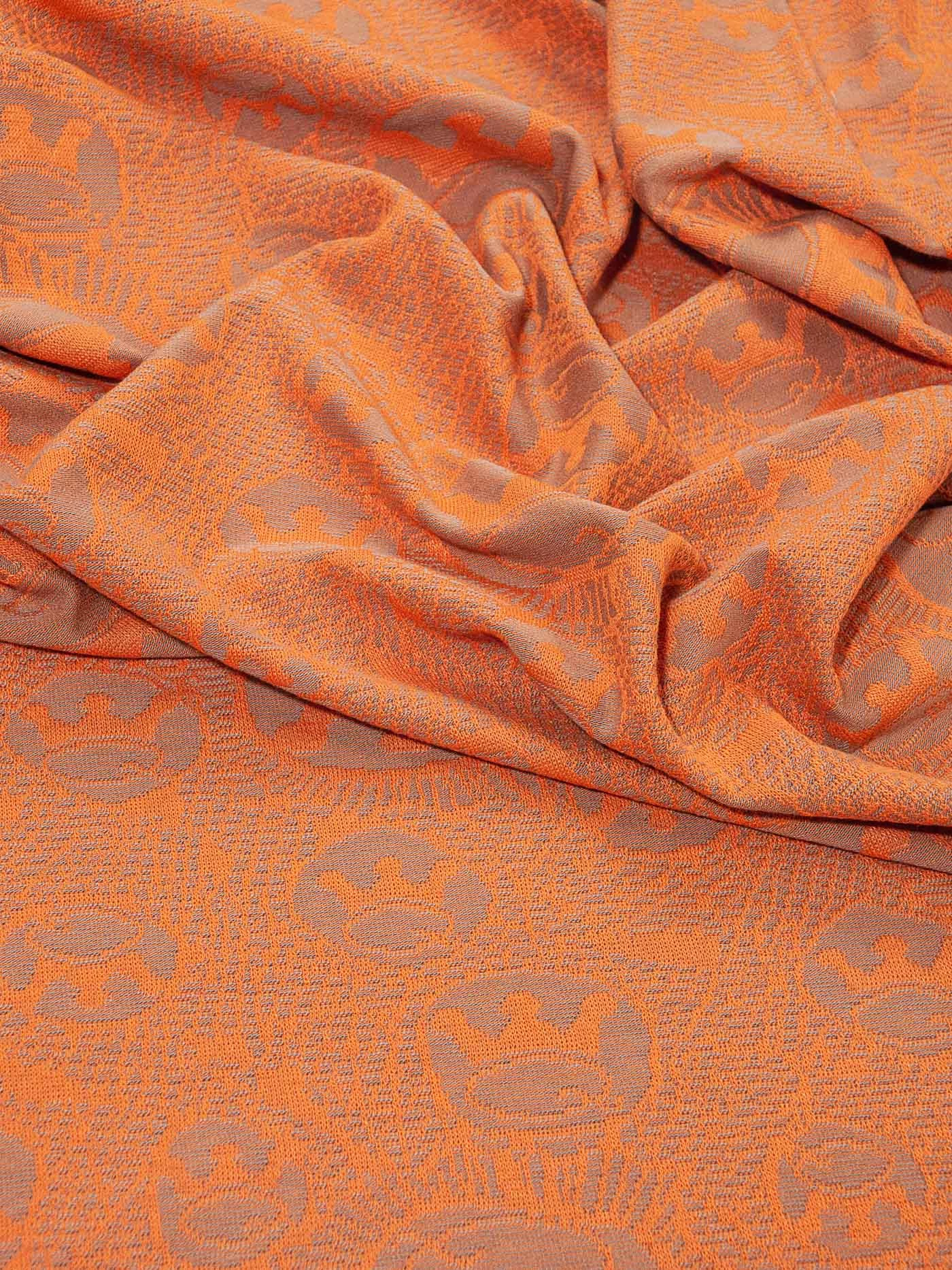 Средней плотности трикотаж, в сочетании серо-бежевого и темно-оранжевого, за счет чего создается эффект меланжа, а также фирменный стиль от Save The Queen придает изюминку и даже таинственность этому трикотажу, пластичен. Для пошива стильных кофточек, туник, платья.