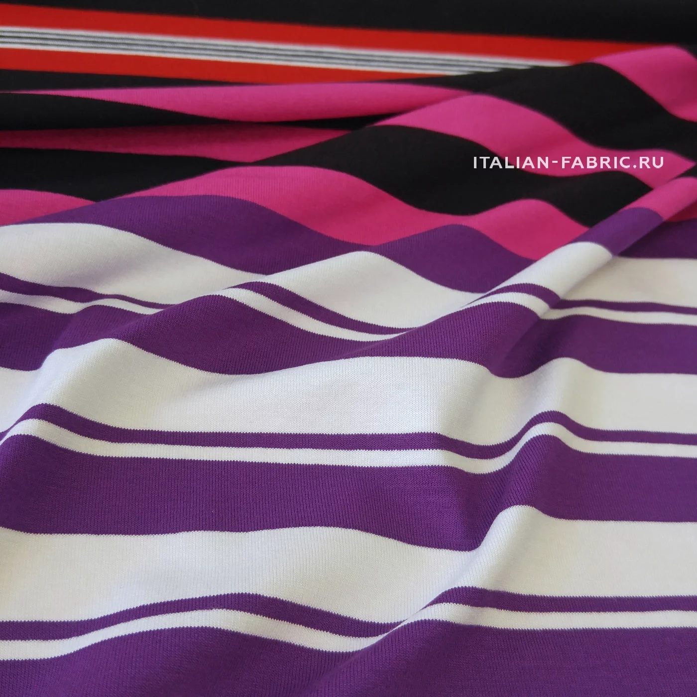 Купон 72 см. Тактильно очень приятный трикотажик в полоску фиолетового, белого, красного и розового цветов.