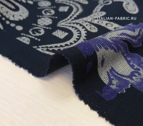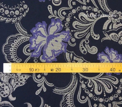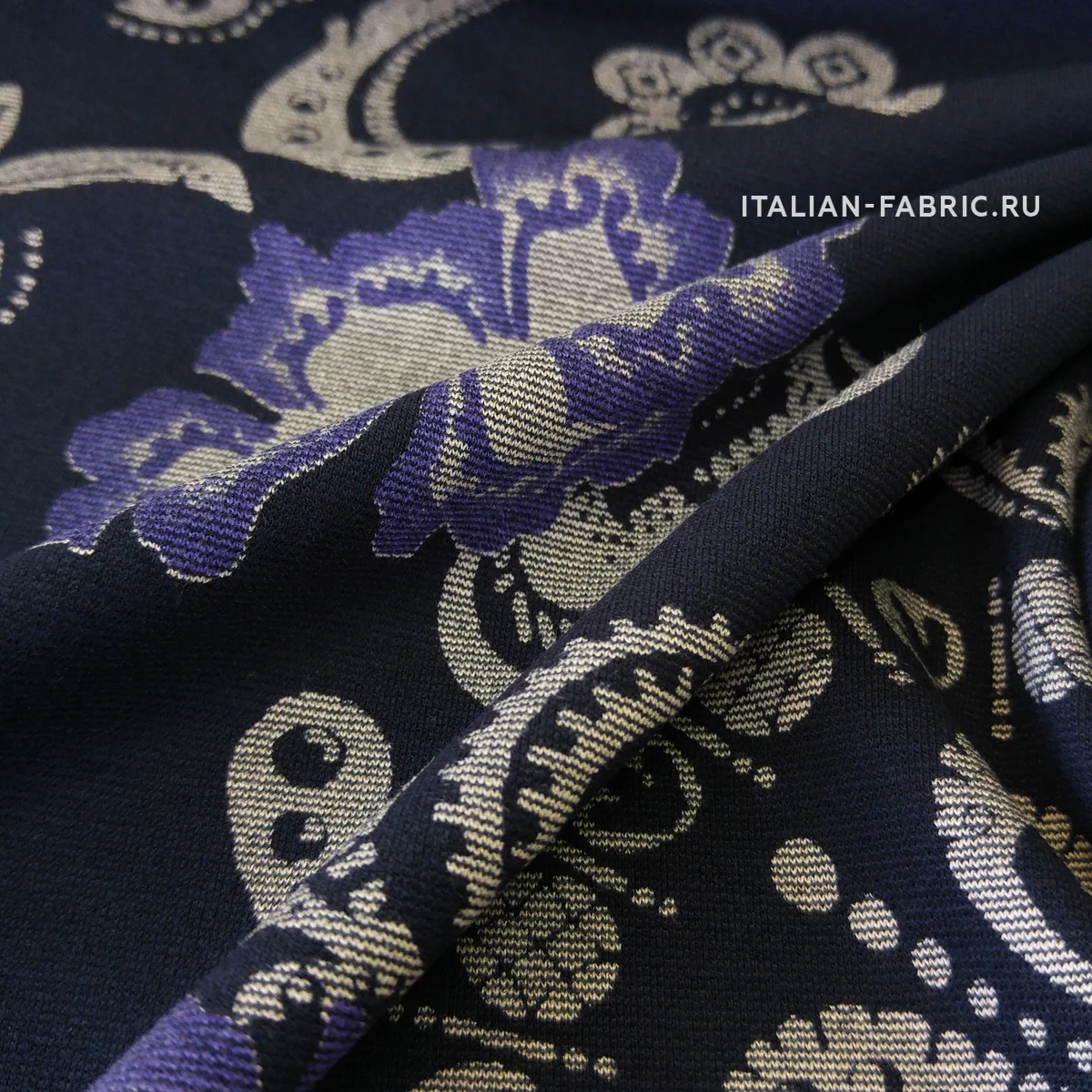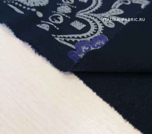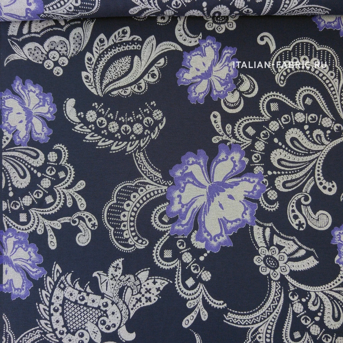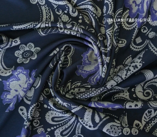 Основной фон темно-синий. Качество отличное, тактильно очень приятный. Джерси прекрасно подходит для пошива платья, сарафанов, юбок, костюмных ансамблей, кофточек.