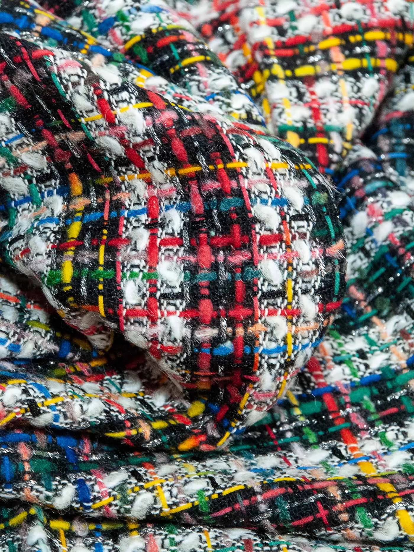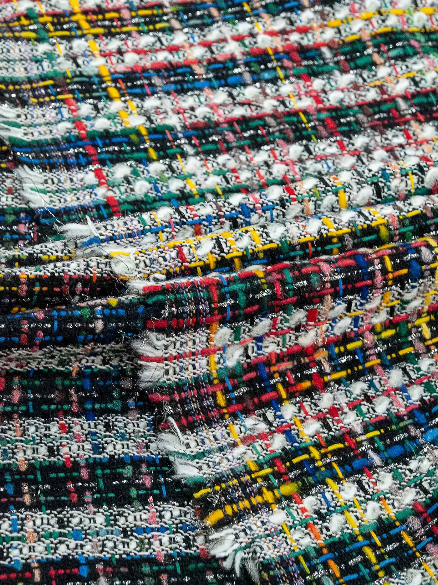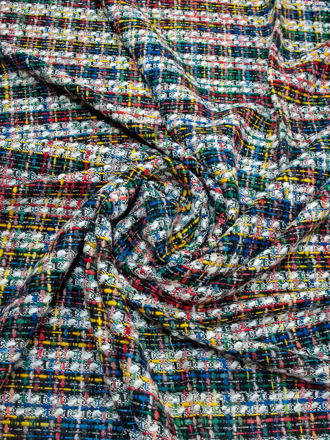 Полотно фирменной фактуры в ярком молочно-желтом сочетании трендового узора «гусиная лапка» с деликатно играющими на свету нитями метанита светло-желтого цвета. За счет смесового состава идеально подойдёт на жакеты на подкладе, костюмы, платья и юбки.