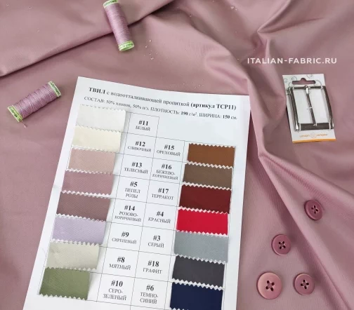 Твил имеет водоотталкивающую пропитку. Капли воды не впитываются, а скатываются с материала. Благодаря отличному составу и визуальным характеристикам, плотности и прочности, твил используется для пошива женских и мужских костюмов, ветровок, курток, плащей, корпоративной и форменной одежды. Большая цветовая палитра.