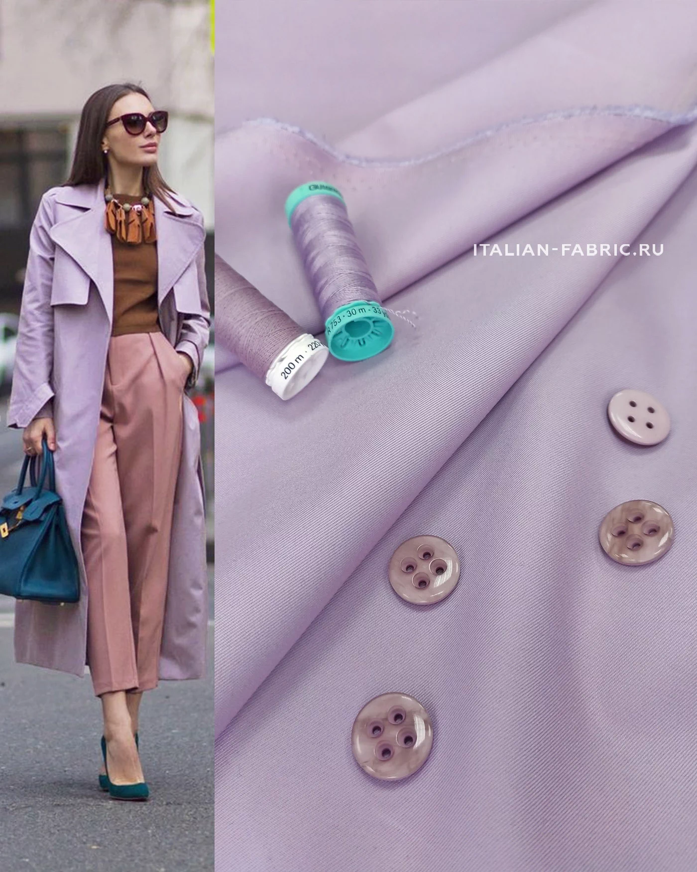 Образы в пастельных оттенках роскошны! Для весеннего комплекта особенно эффектны тренчи в светлых тонах. Твил шикарного сиреневого оттенка изумительно смотрится в тренчах, плащах, костюмных ансамблях.