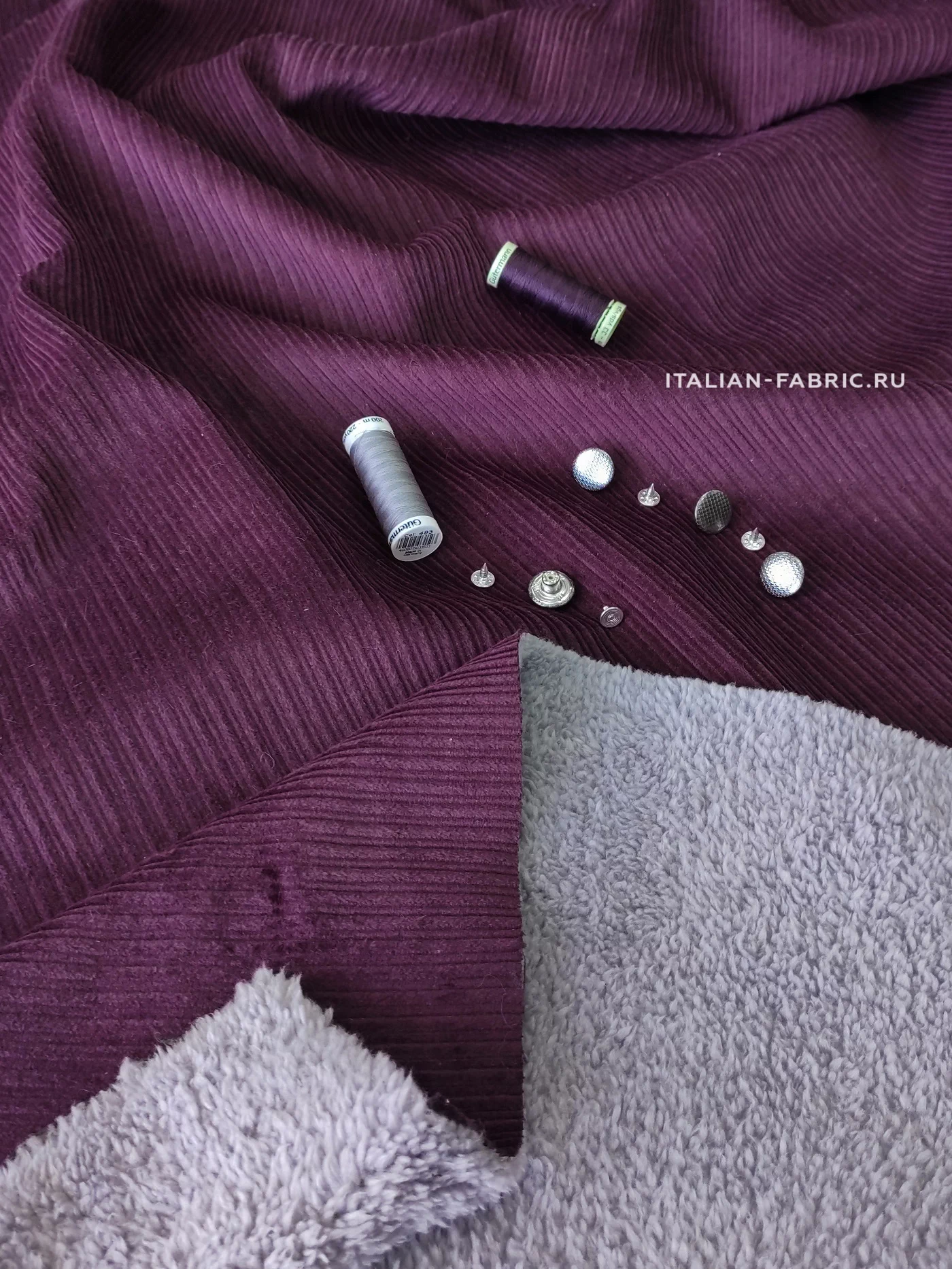 Очень красивый и стильный материал – вельвет с искусственным мехом для пошива актуальных курток-авиаторов, парок и курток. Благодаря тому, что материал двусторонний, изнаночную меховую сторону можно интересно обыграть на воротнике, манжетах, кромке, а также карманах. Материал прекрасного качества. Вельветовая сторона бархатистая, ширина рубчика – 3- 4 мм. Экомех под каракуль – красивый, мягкий, очень приятный тактильно.