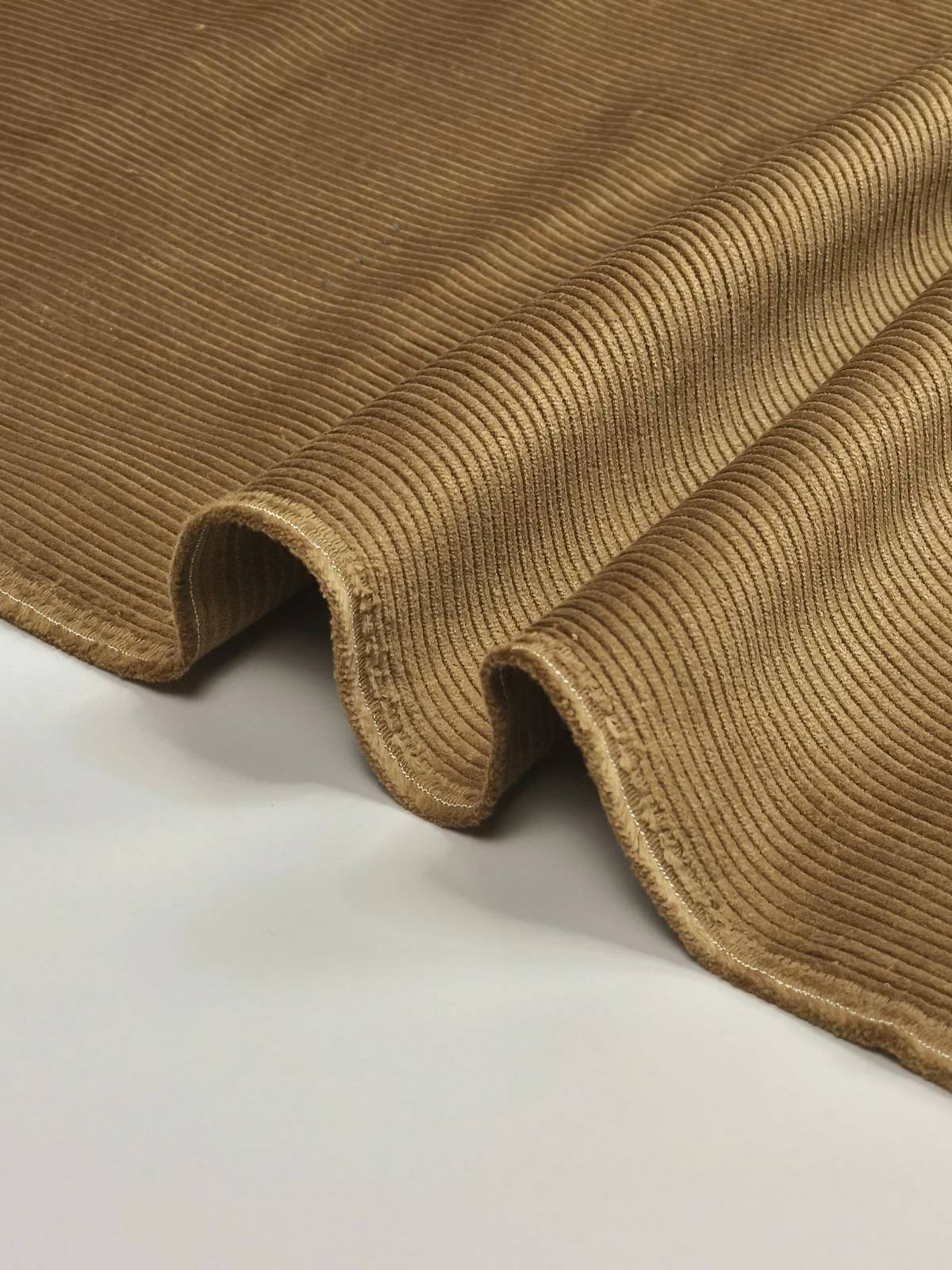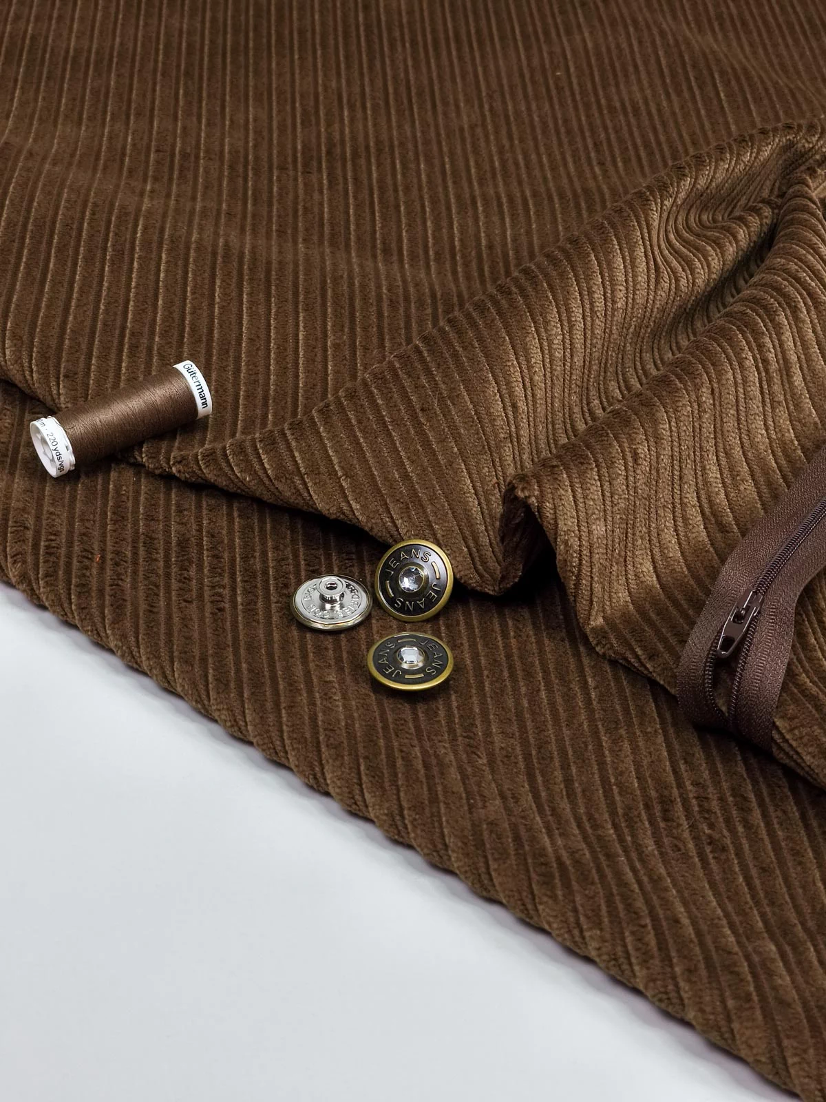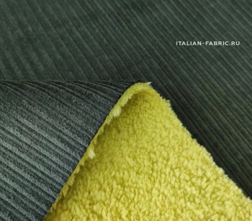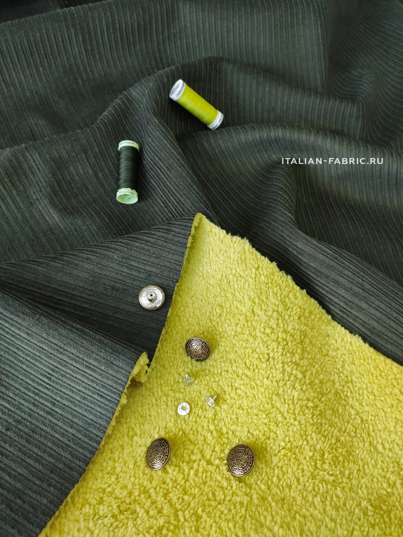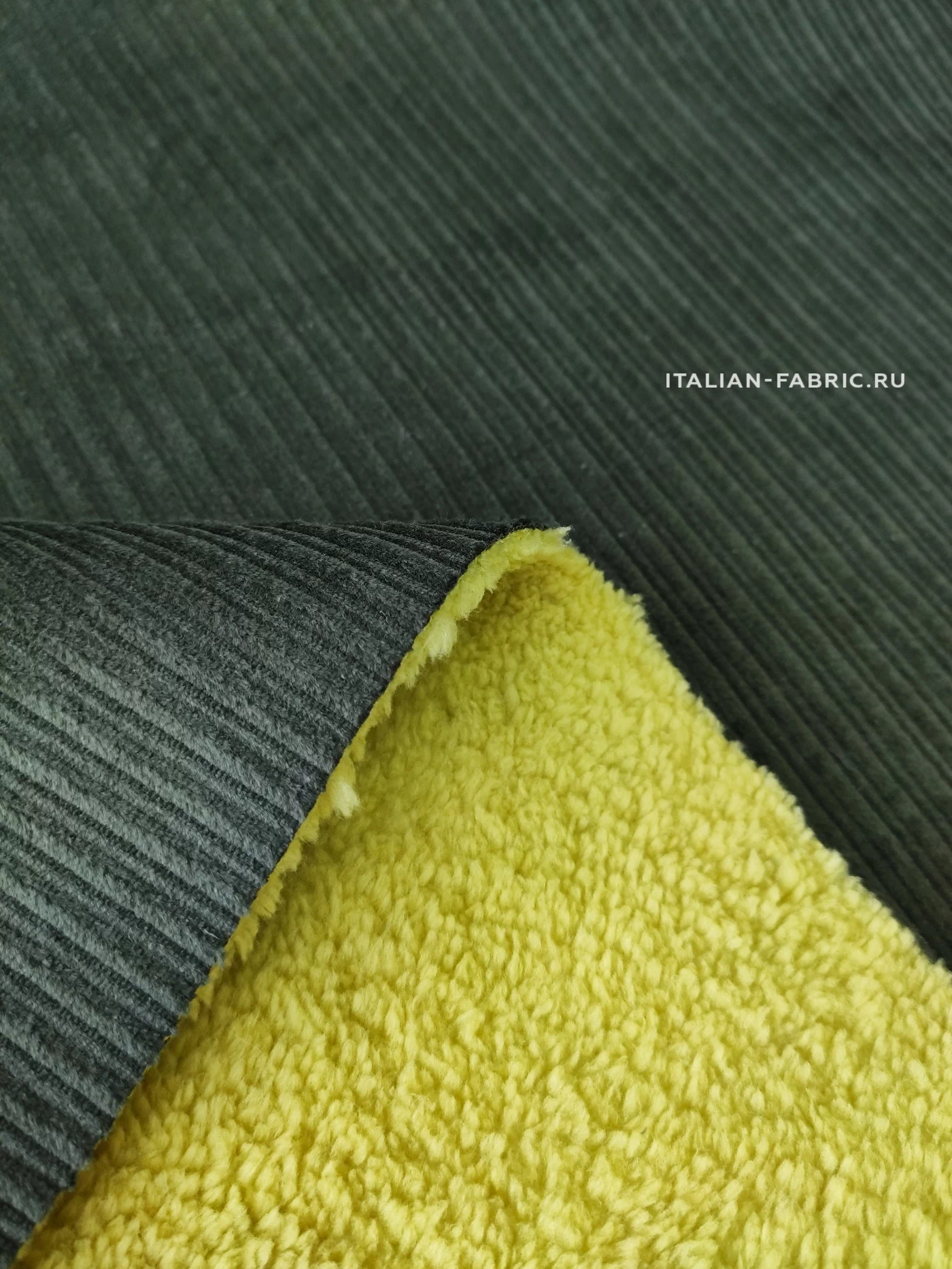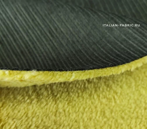 Очень красивый и стильный материал – вельвет с искусственным мехом для пошива актуальных курток-авиаторов, парок и курток. Благодаря тому, что материал двусторонний, изнаночную меховую сторону можно интересно обыграть на воротнике, манжетах, кромке, а также карманах. Материал прекрасного качества. Вельветовая сторона бархатистая, ширина рубчика – 3- 4 мм. Экомех под каракуль – красивый, мягкий, очень приятный тактильно.