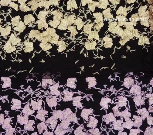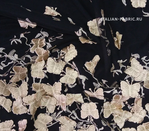Шикарная вышивка по сетке из Италии в буквальном смысле порхающими бабочками, которые очень надежно пришиты! Отличный вариант для нарядного (выпускного) платья. Подходит для пошива топов, платьев, сарафанов, юбок, а также в качестве отделки.