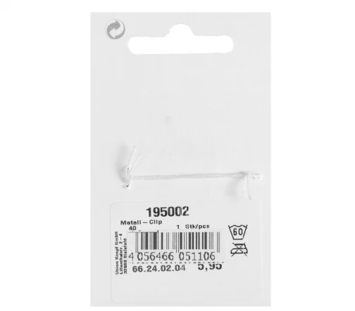 Клипса очень удобный вид застежек для одежды. Состоит из двух частей, каждая из которых пришивается на разные полы изделия (плаща, пальто, кардигана, свитера и др.). Для застёгивания длинная часть клипсы вставляется в петлю и зажимается. Застежка произведена из качественного сплава металлов, имеет полуматовую поверхность. Покрытие устойчиво к коррозии.
