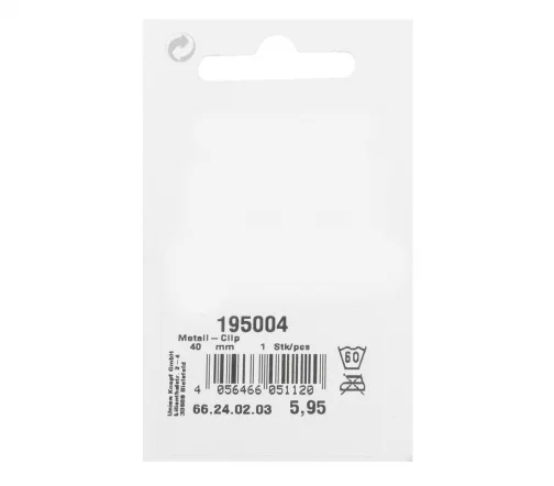 Клипса очень удобный вид застежек для одежды. Состоит из двух частей, каждая из которых пришивается на разные полы изделия (плаща, пальто, кардигана, свитера и др.). Для застёгивания длинная часть клипсы вставляется в петлю и зажимается. Застежка произведена из качественного сплава металлов, имеет полуматовую поверхность. Покрытие устойчиво к коррозии.