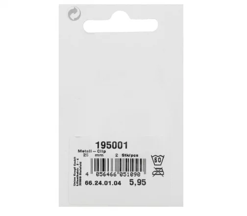 Клипса очень удобный вид застежек для одежды. Состоит из двух частей, каждая из которых пришивается на разные полы изделия (плаща, пальто, кардигана, свитера и др.). Для застёгивания длинная часть клипсы вставляется в петлю и зажимается. Застежка произведена из качественного сплава металлов, имеет полуматовую поверхность. Покрытие устойчиво к коррозии.