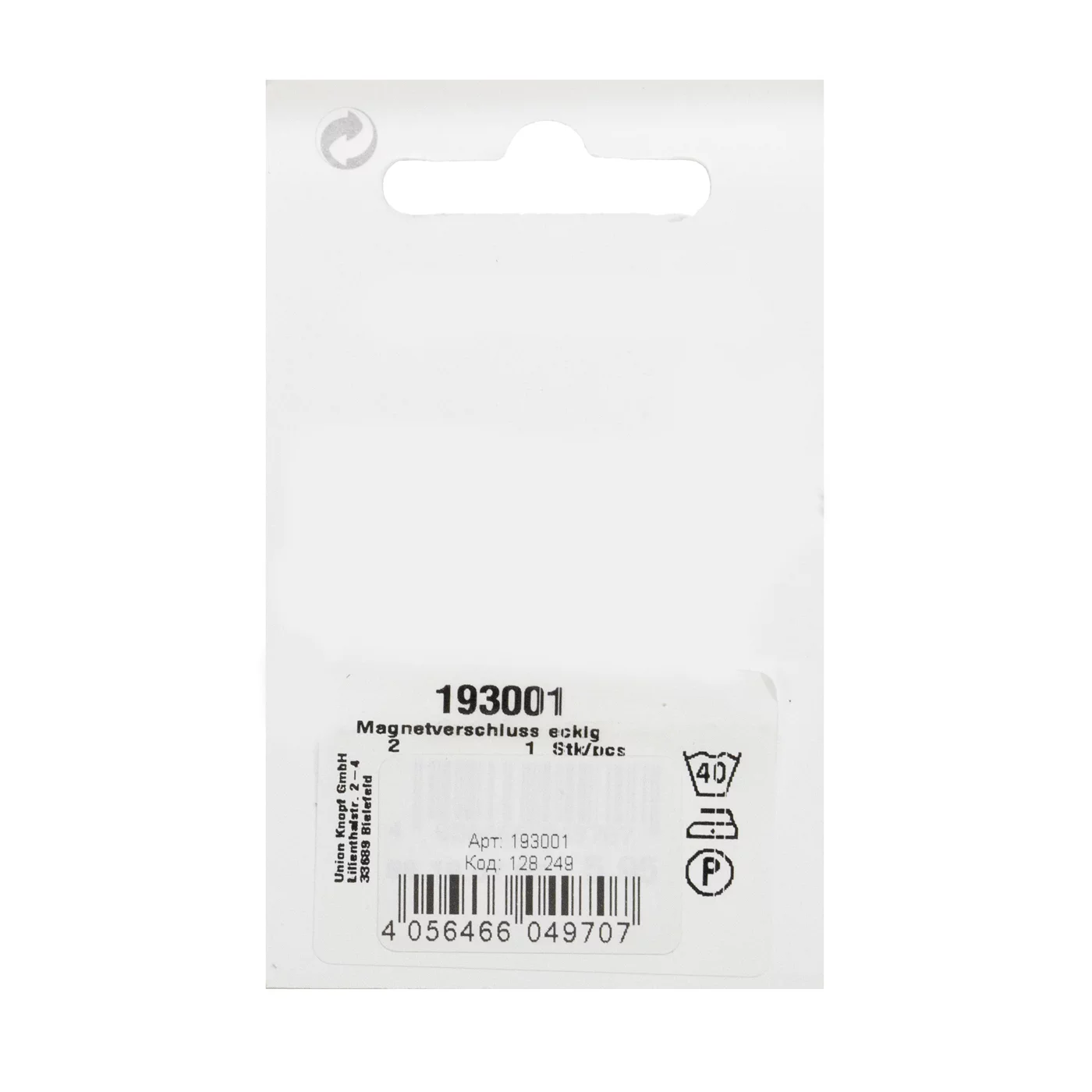 Застежка магнитная пришивная Union Knopf, прямоугольная, металл, 2 шт., 193001